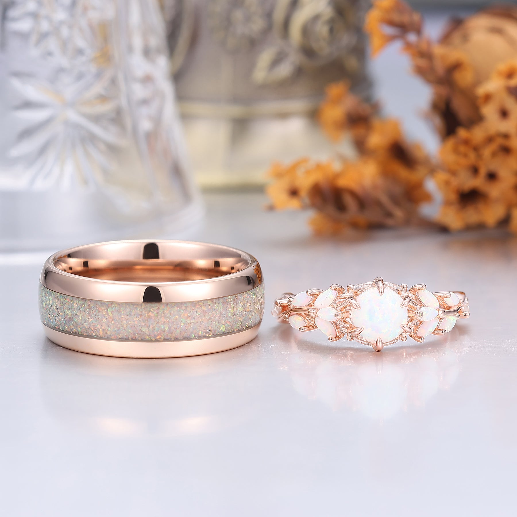 Metal Type: Tungsten Carbide With Lab White Opal Inlays