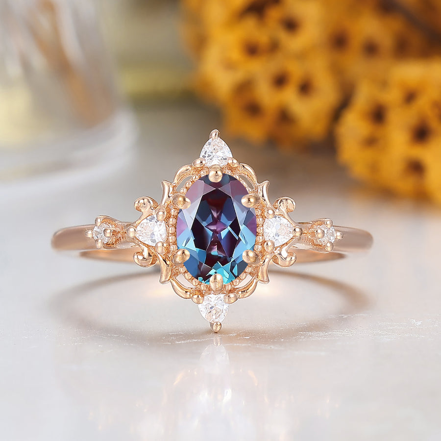 Vintage Settings: Art deco and Victorian-inspired designs complement alexandrite's timeless mystique.