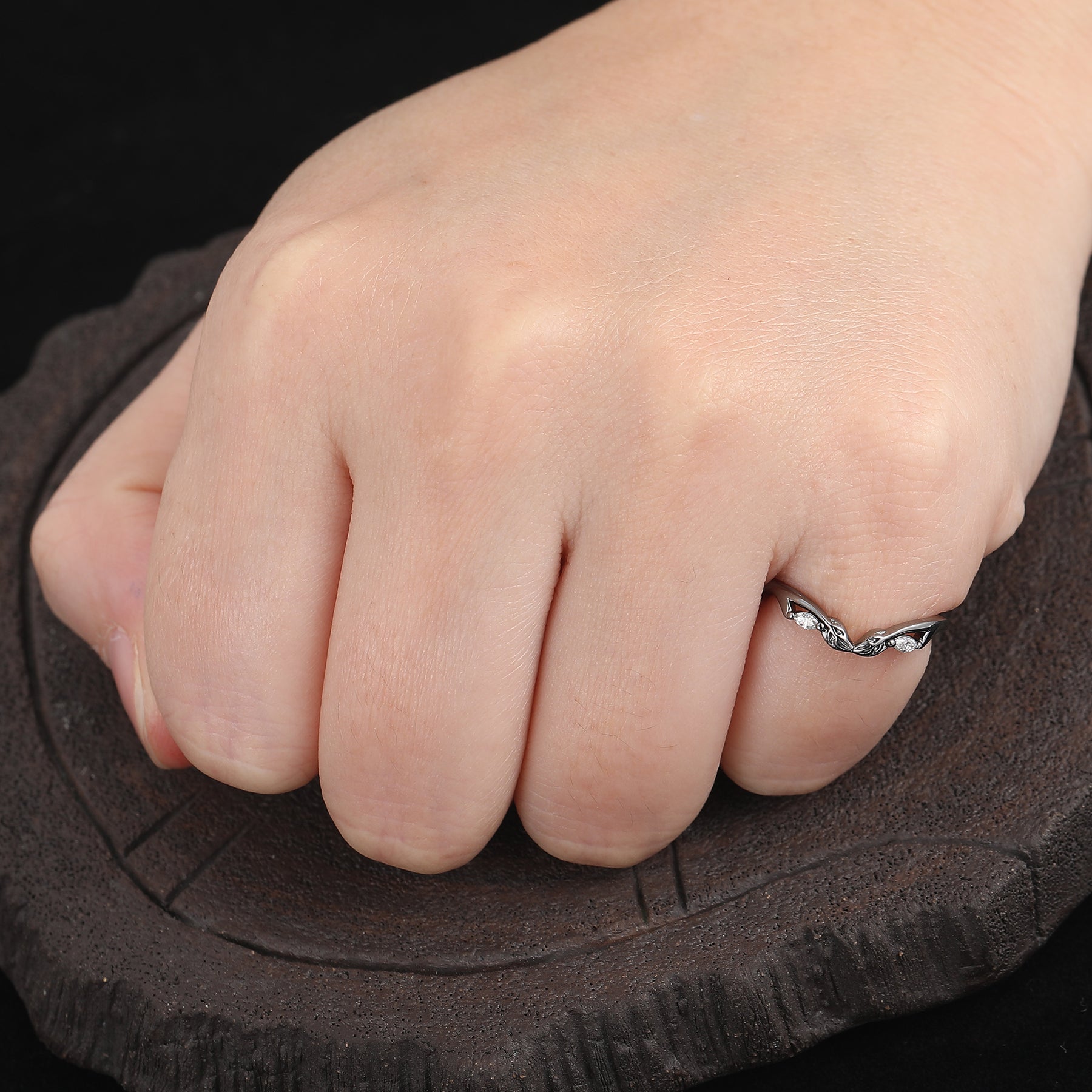 Curved V Shaped 0.09ct Moissanite 14k Gold Stacking Matching Unique Leaf Wedding Band
