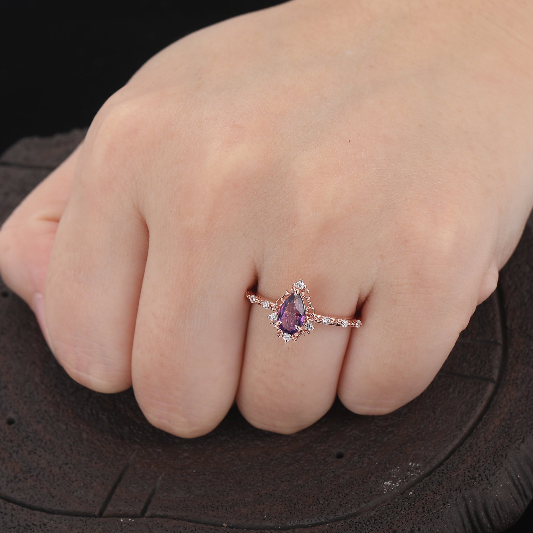Antique Milgrained Filigreed Natural Amethyst His And Hers Ring Purple And Rose Gold Couples Ring