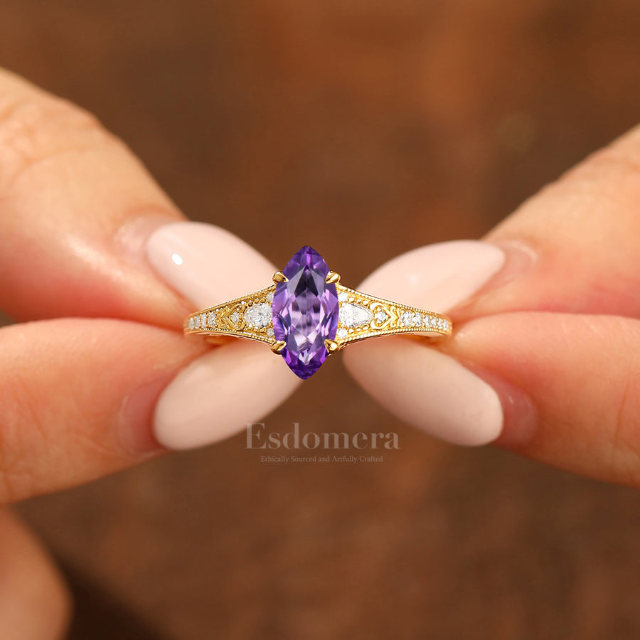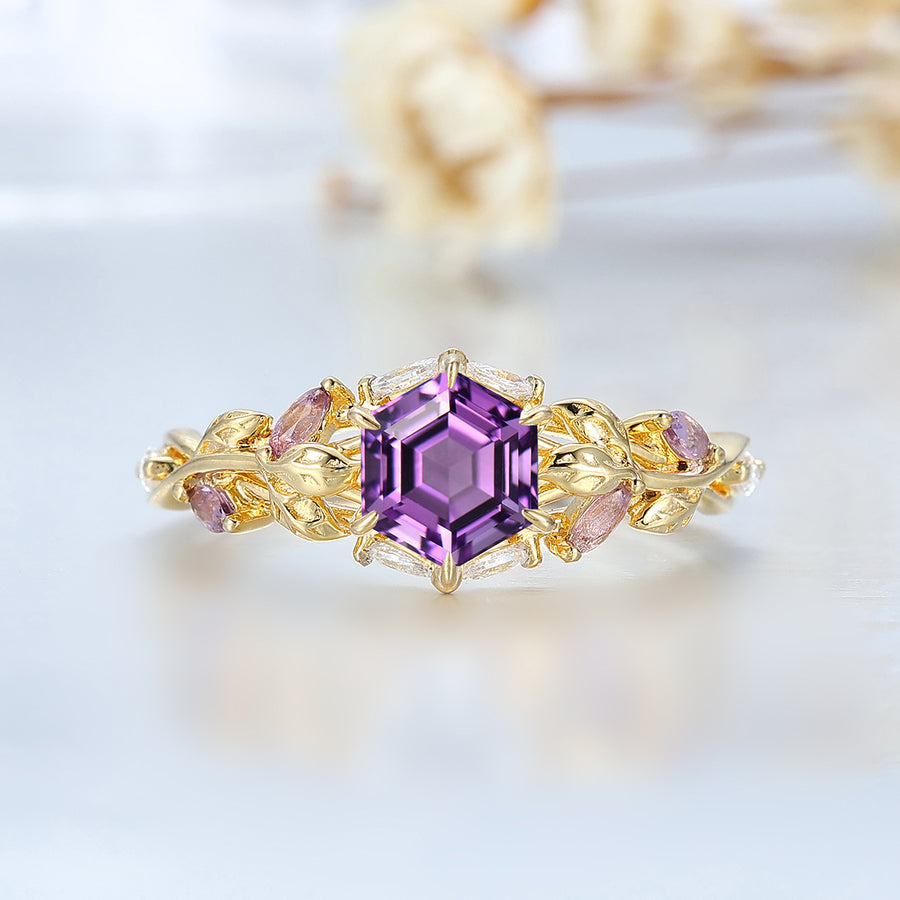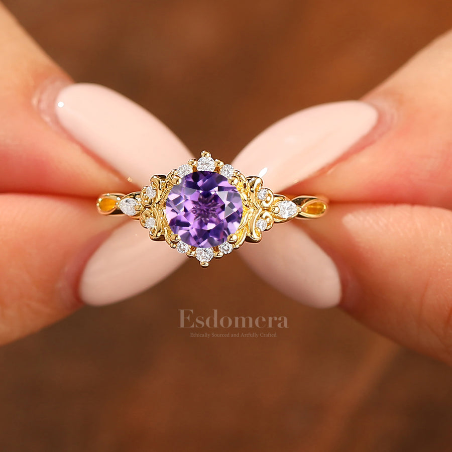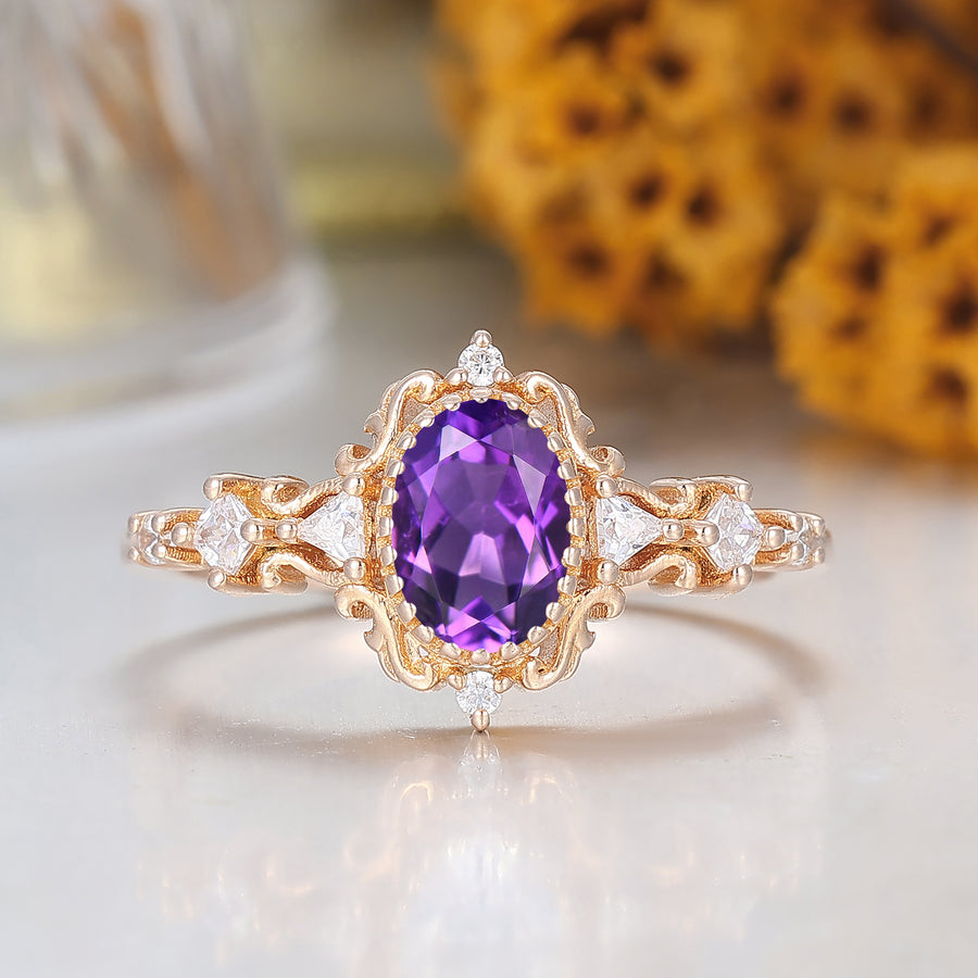 Natural Amethyst Engagement Rings feature stunning purple gemstones perfect for unique proposals. Our vintage amethyst engagement rings showcase timeless elegance, while raw amethyst engagement rings offer natural, uncut crystal beauty.