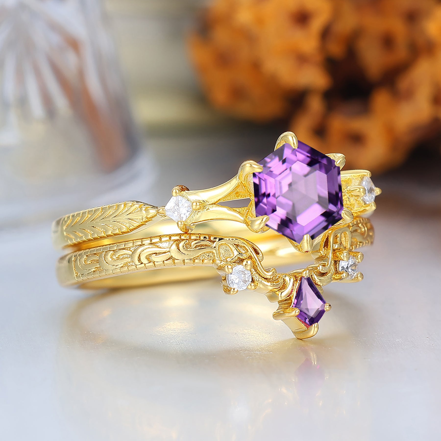 Vintage Royal Amethyst Bridal Set Engagement Ring Romantic Enhancer Ring