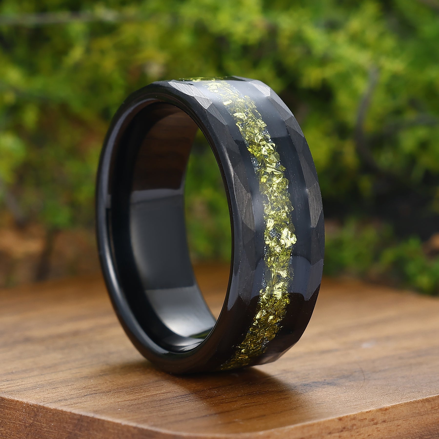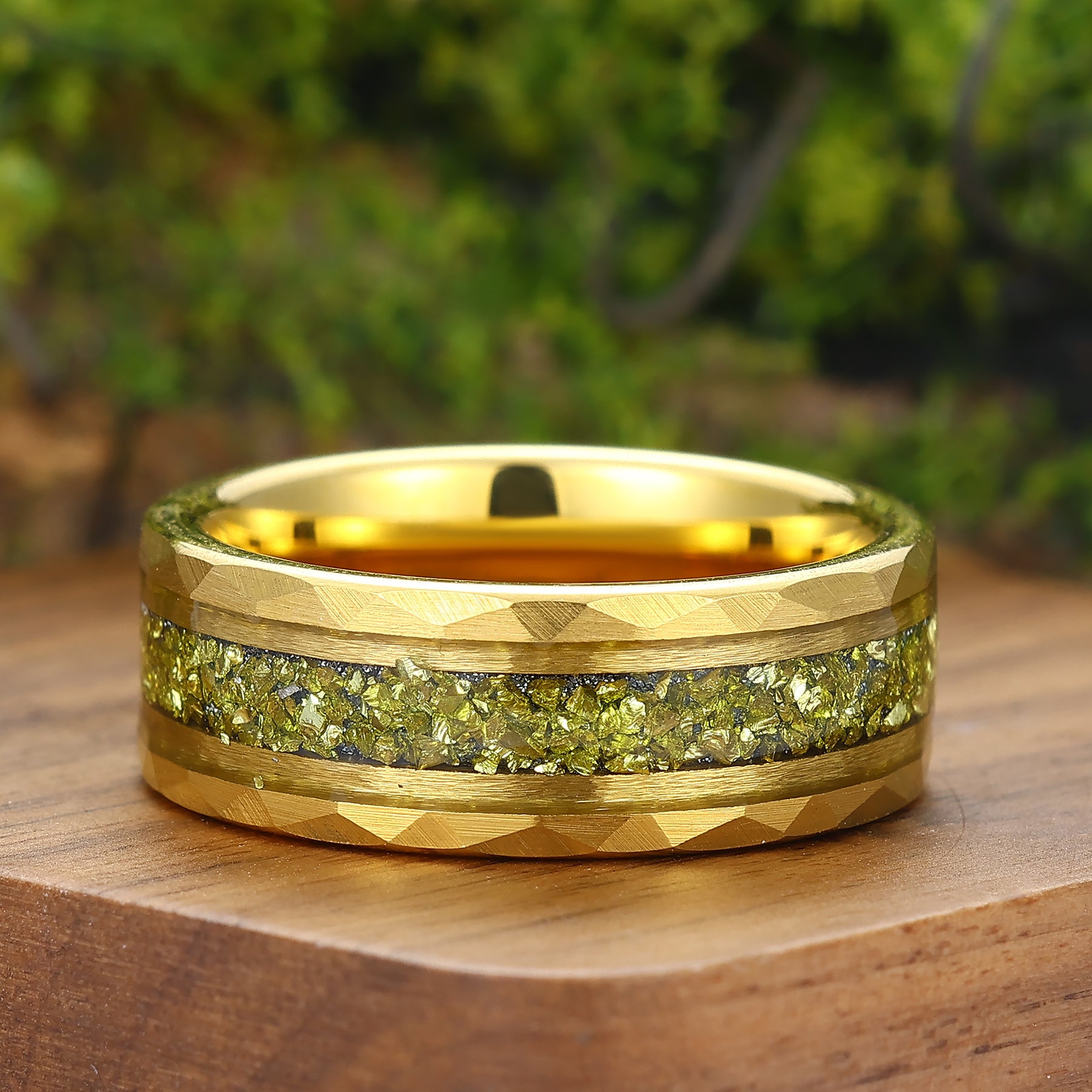 Metal Type: Tungsten Carbide - Crushed Peridot Inlay - Hypoallergenic
