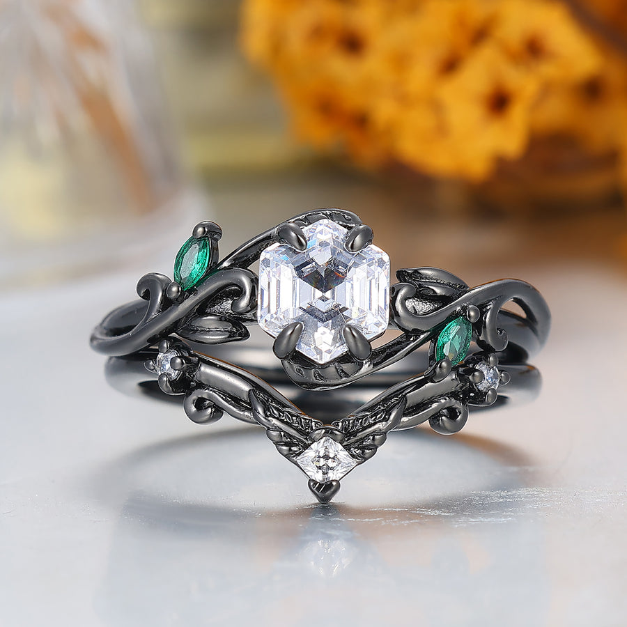 Each ring can be customized with your choice of moissanite cut, including round brilliant, oval, cushion, princess, pear, emerald, radiant, asscher, and marquise. Whether you prefer the maximized sparkle of a round brilliant or the elongated elegance of an oval, we have the perfect stone to match your style.