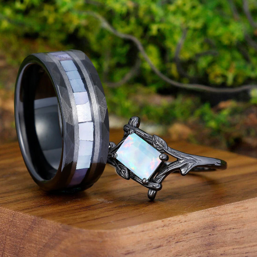 • Opal Wedding Ring Sets: Discover breathtaking opal wedding ring sets, featuring perfectly matched bands that showcase the stone's unique fire.