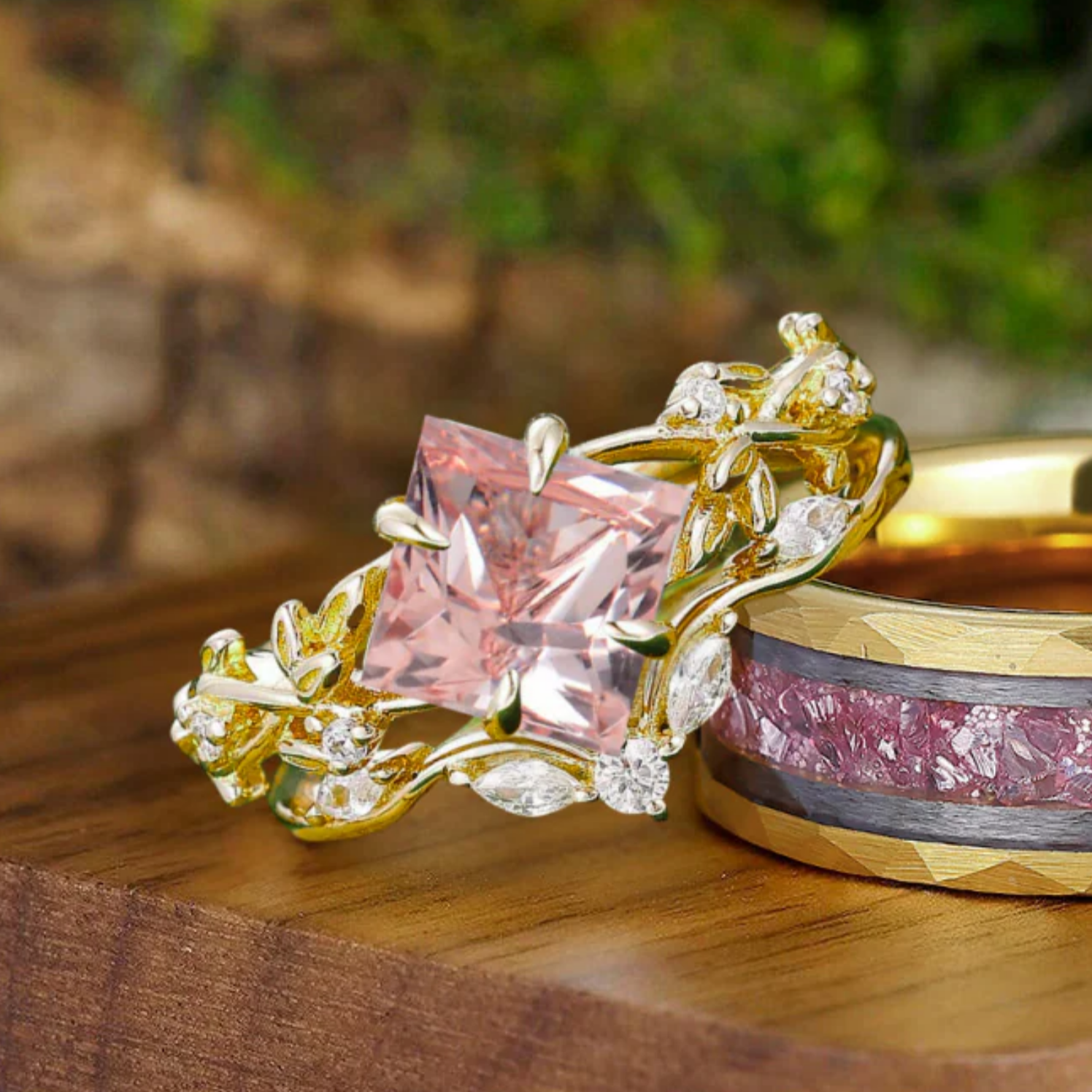 Custom Order-2CT Princess Cut Morganite Women Ring Set For 10K Gold Bridal Wedding Ring Set