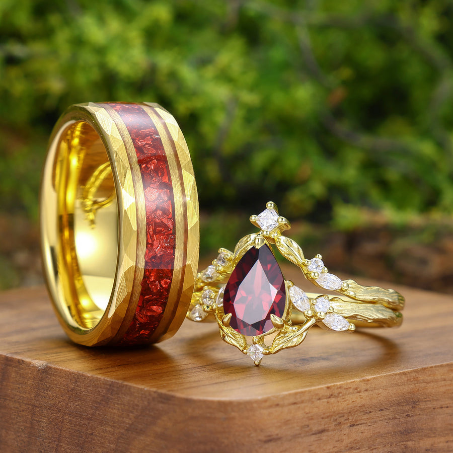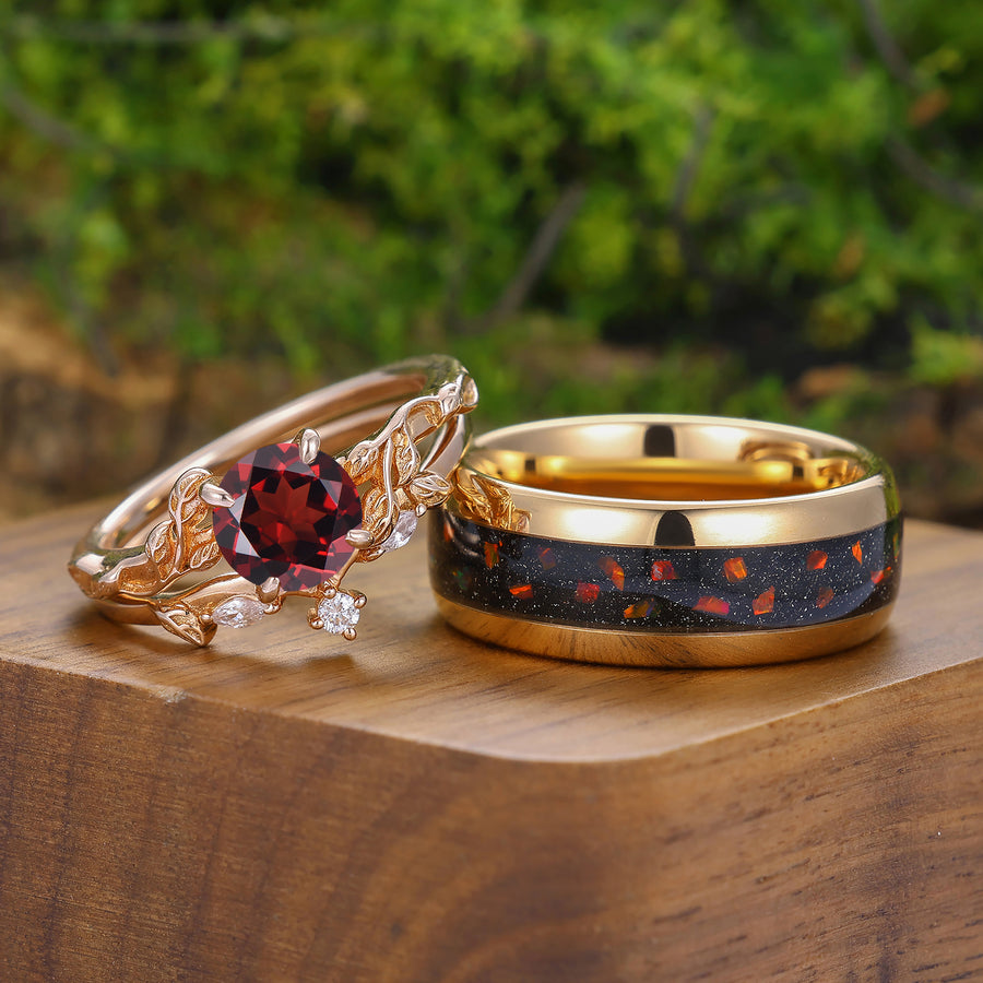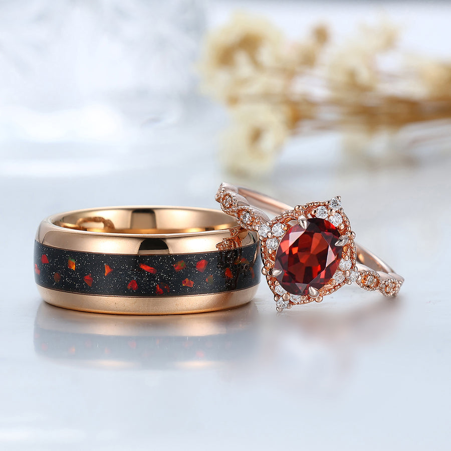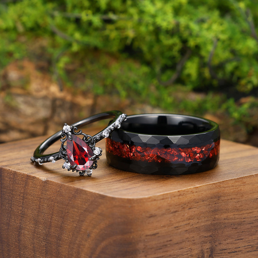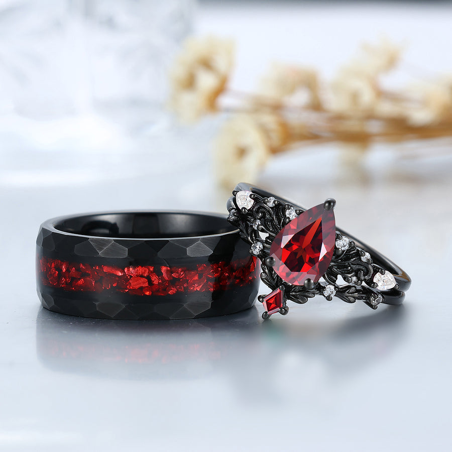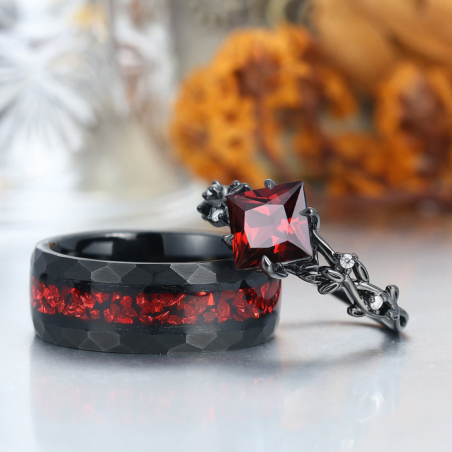 Declare your bold and passionate love with our stunning collection of black and red couple rings. Featuring the deep, fiery glow of genuine Red Garnet, these rings are a powerful symbol of your unique connection. Whether you're searching for dramatic black and red wedding rings, a meaningful red promise ring for couples, or a striking red garnet engagement ring, our selection is crafted to make a statement. Discover a set that perfectly captures the intensity and devotion of your shared story.