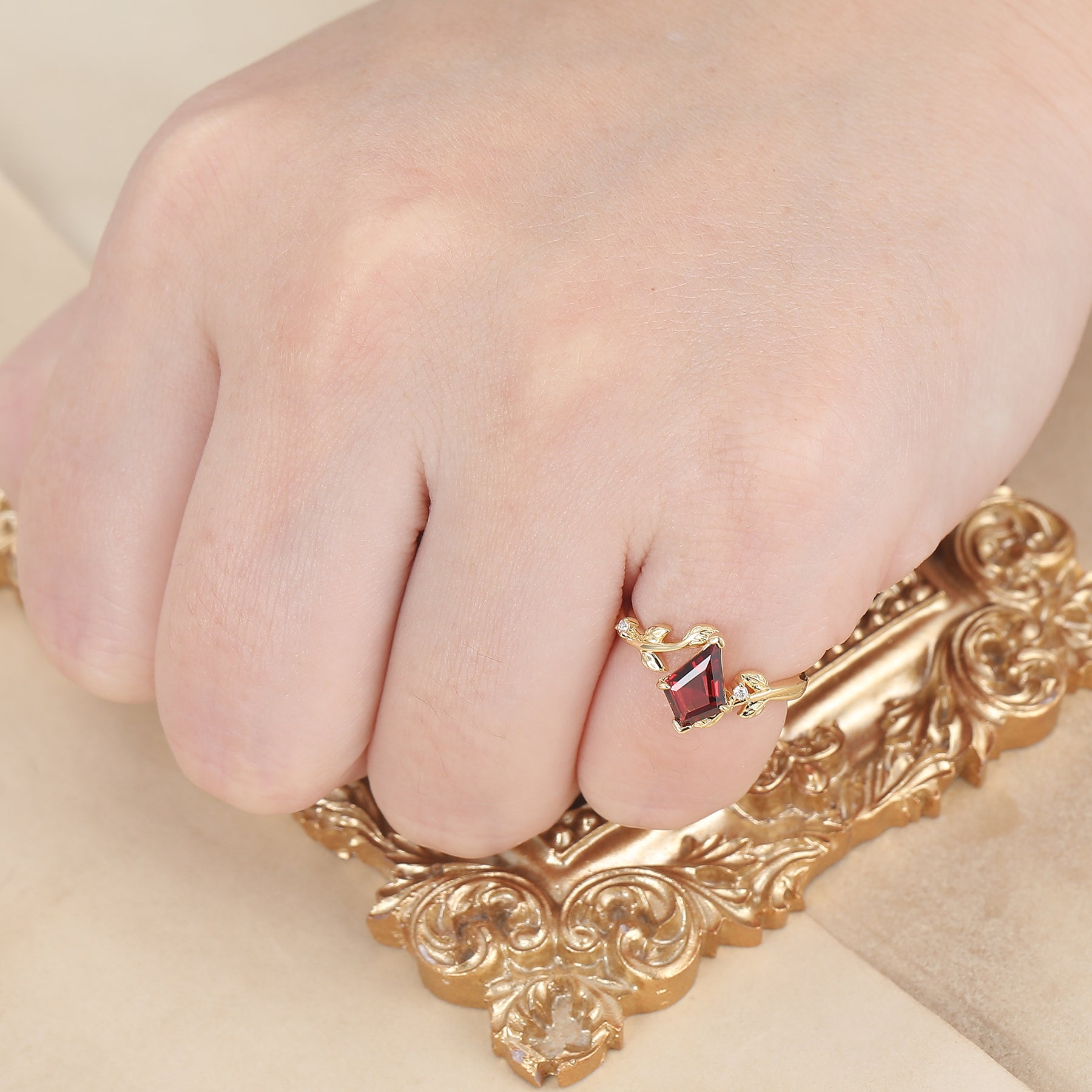 1.35Carat Kite Shaped Natural Red Garnet Wedding Ring Art Deco Leaf Design Ring 14k Soild Gold - Esdomera