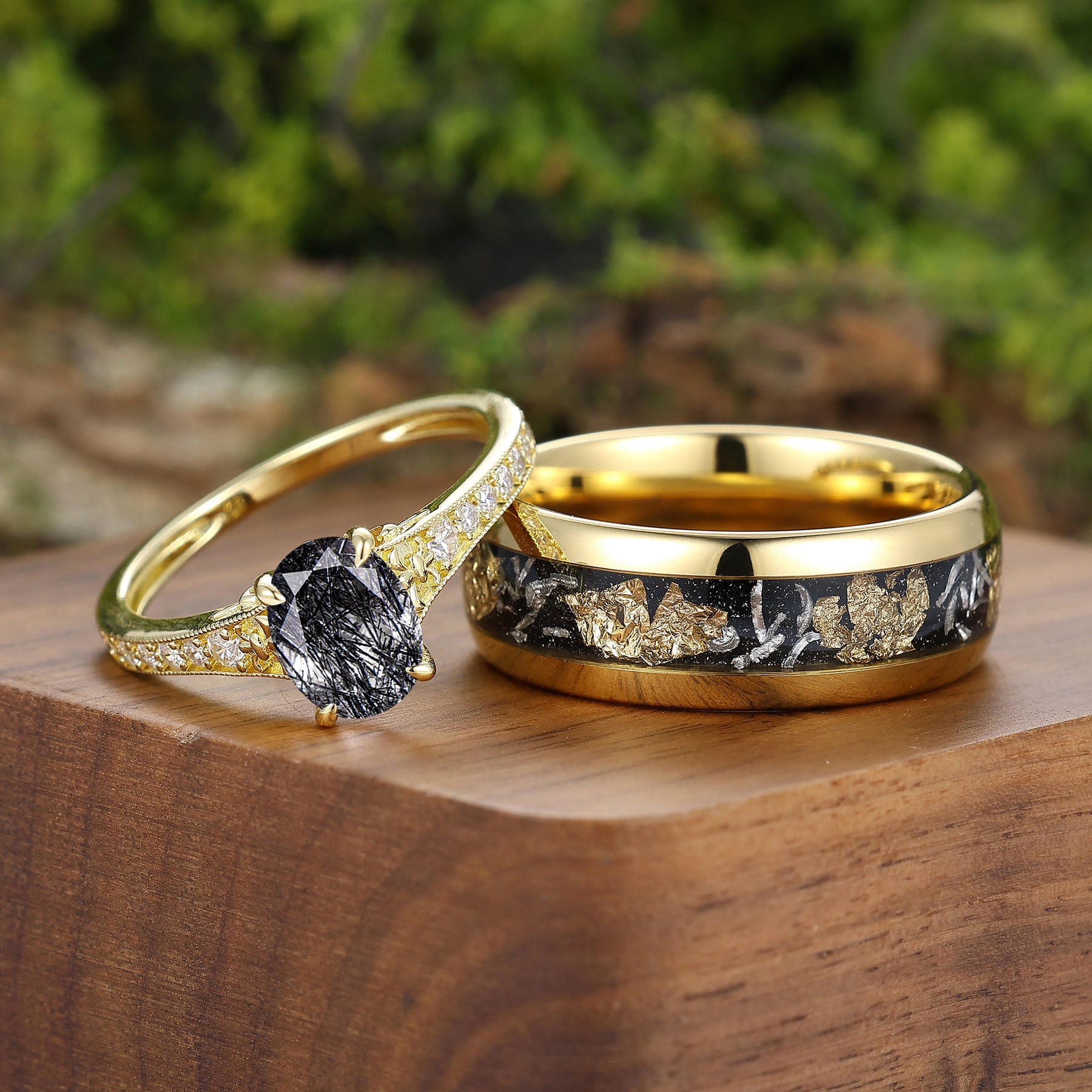 Metal Type: Wolframkarbid - Meteorit- und Goldfolieneinlage - Hypoallergen