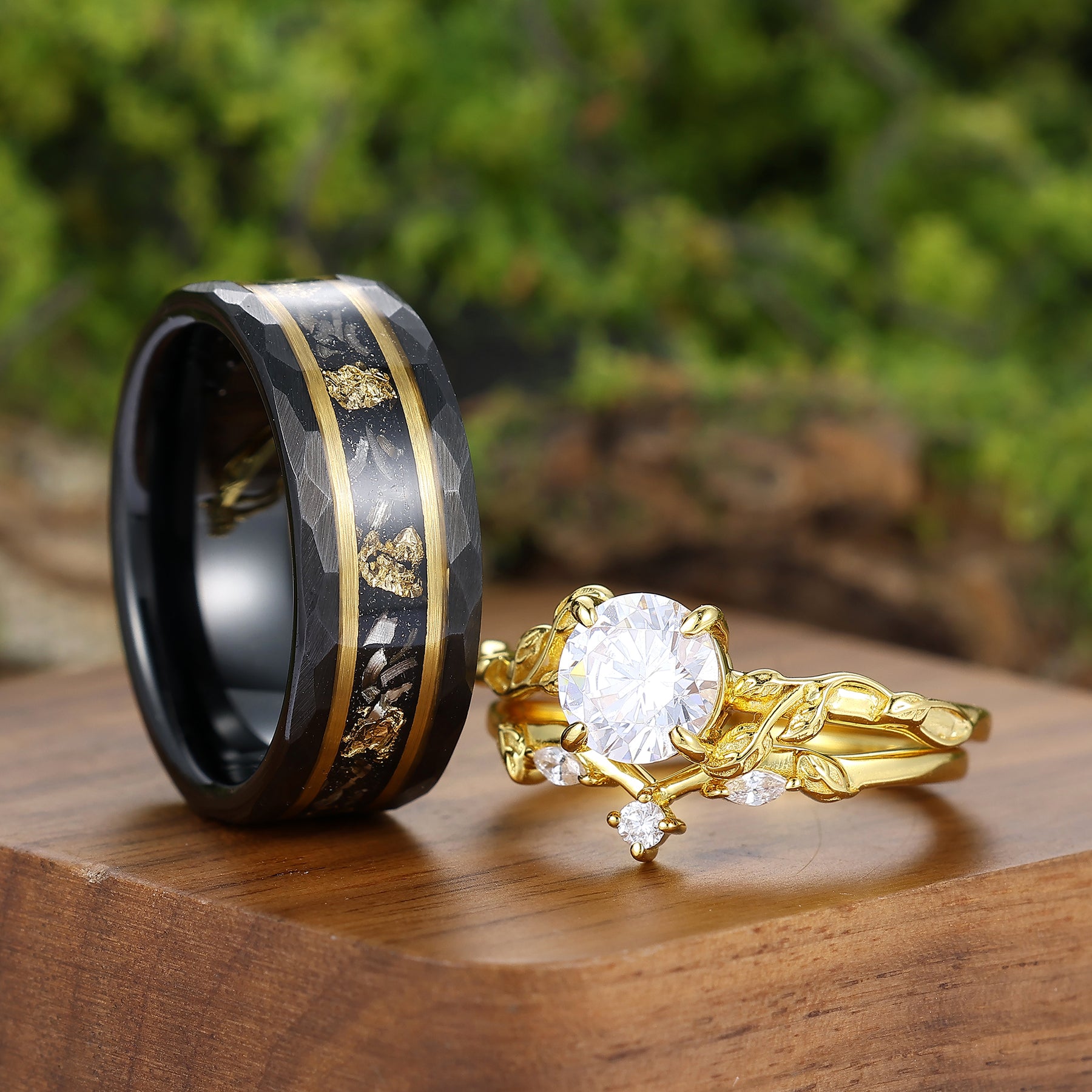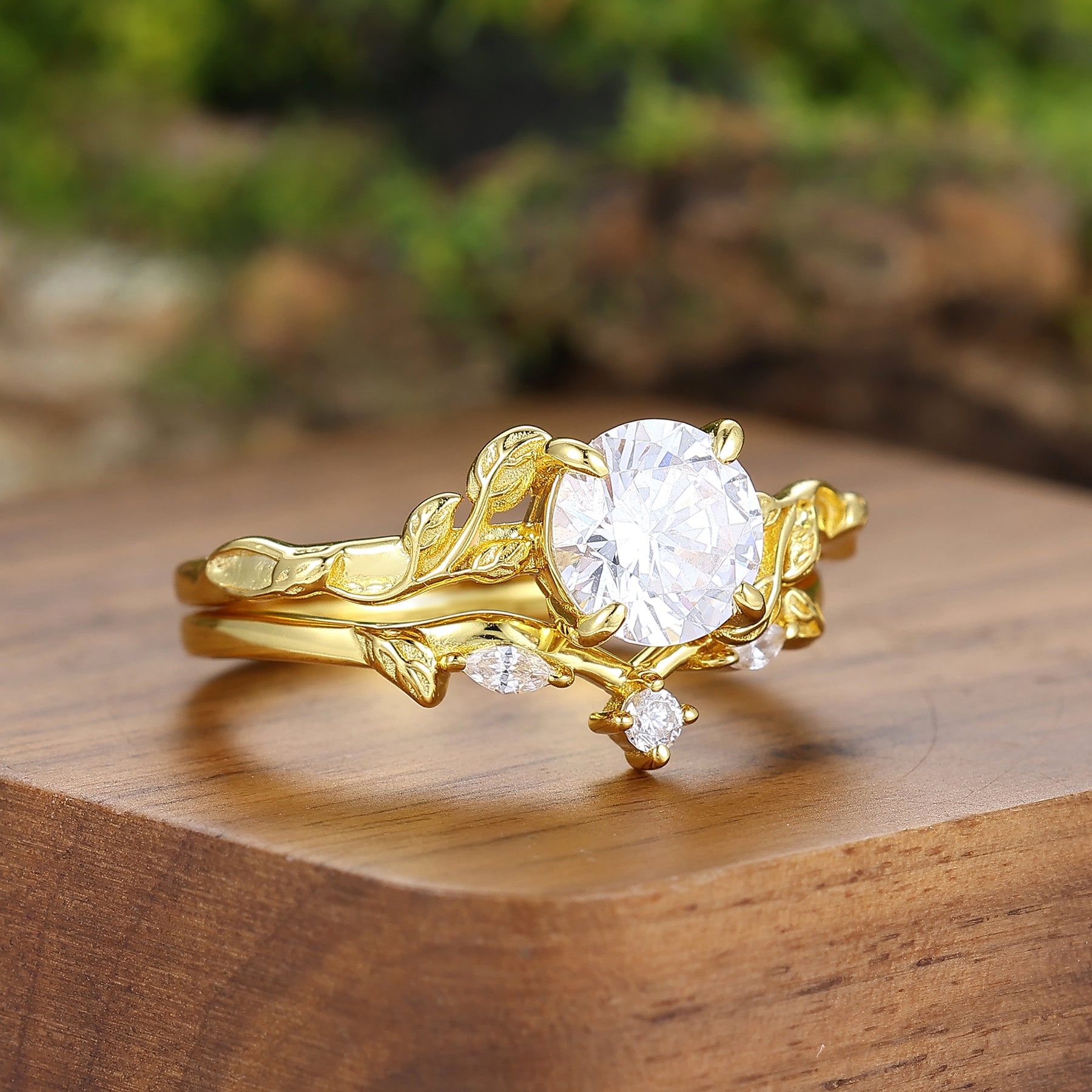 Blatt-Design Rundes Moissanit-Paar-Ring-Set Versprechensringe Für Ihn Und Sie