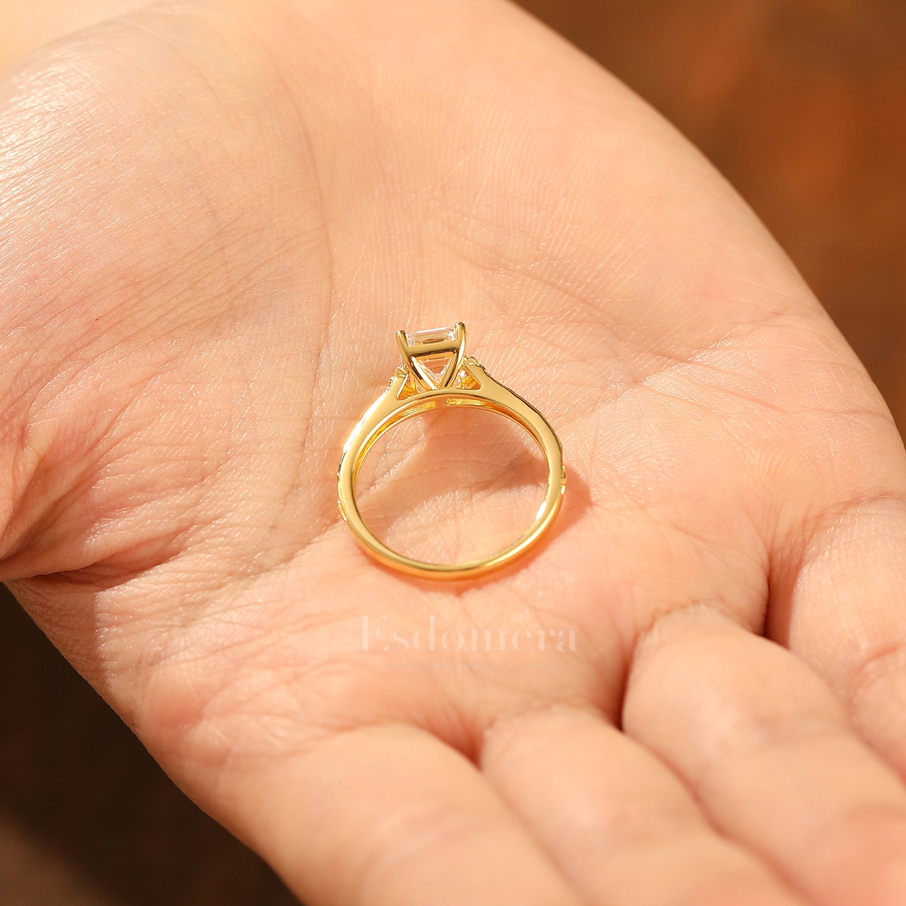 14K Solid Gold Solitaire 2CT Emerald Cut Filigreed Moissanite Bridal Ring Baroque-inspired Women Ring