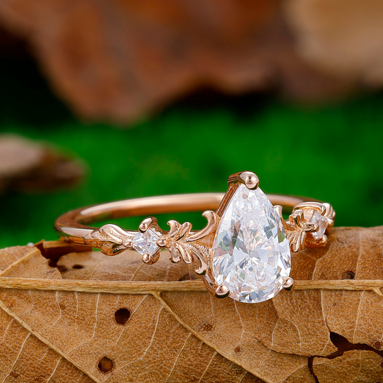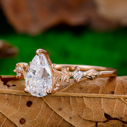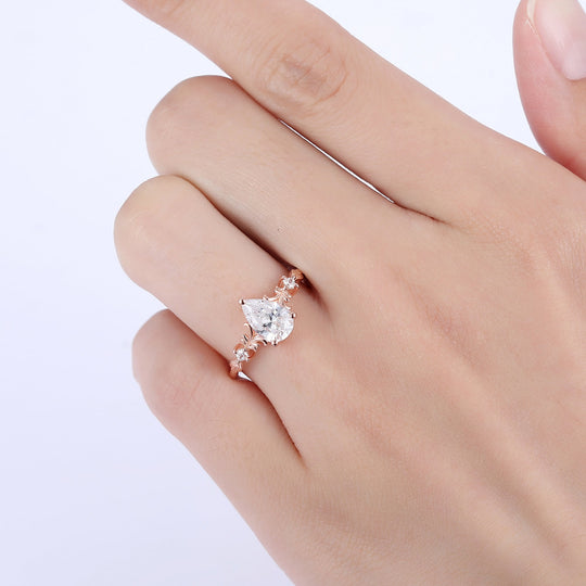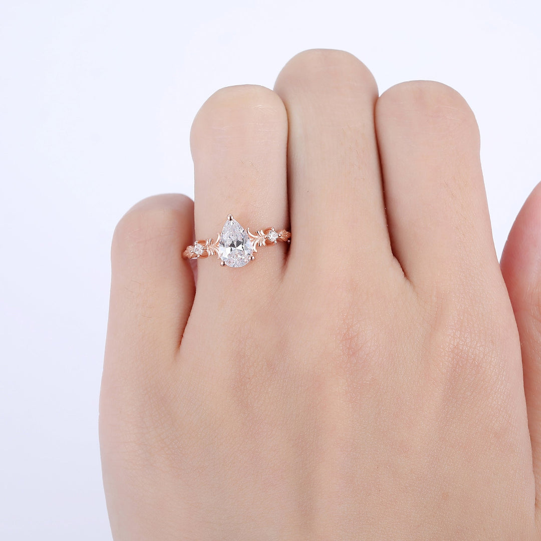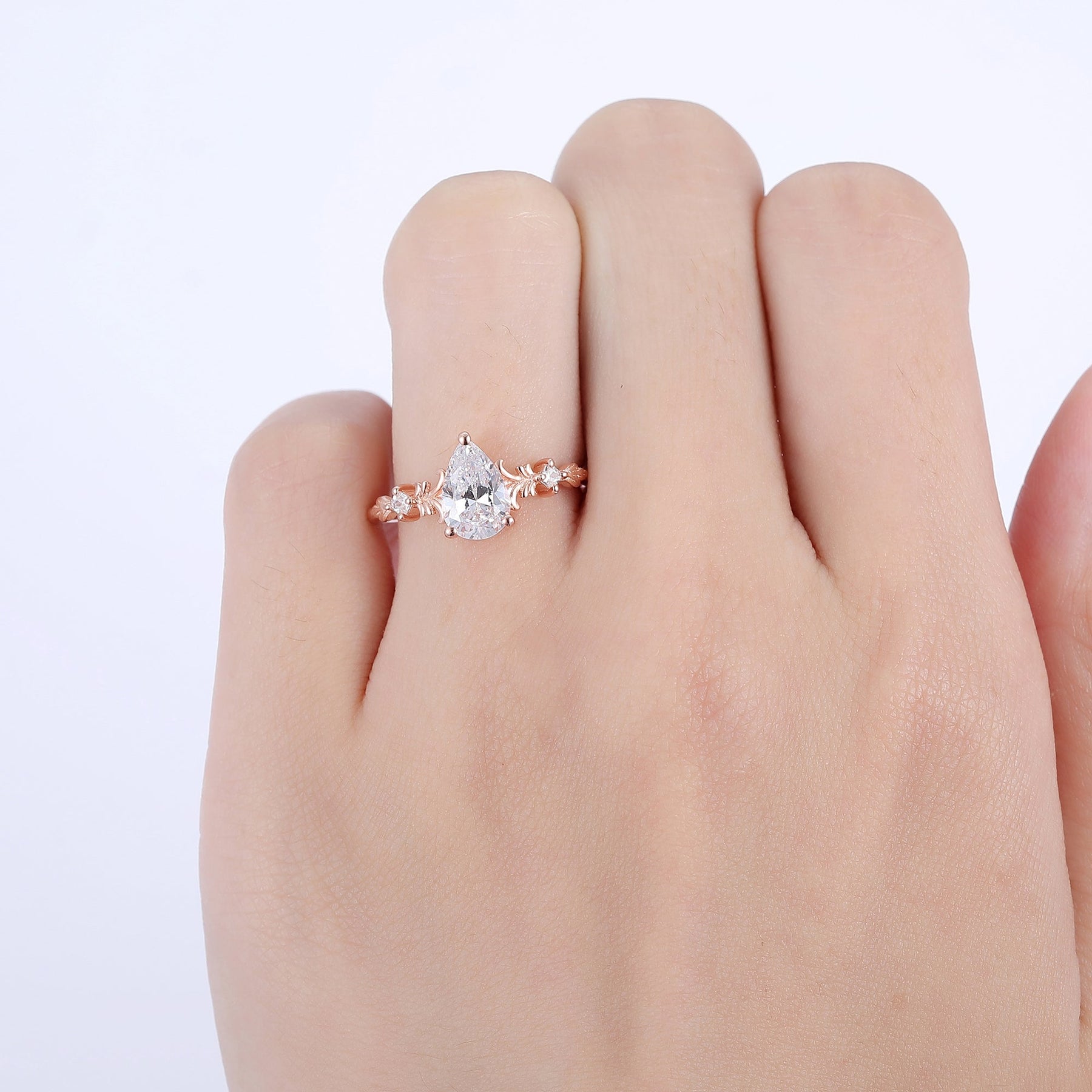 Zierlicher Birnenschliff Moissanit Reben Verlobungsring Krappenfassung Versprechen Jubiläum Brautring