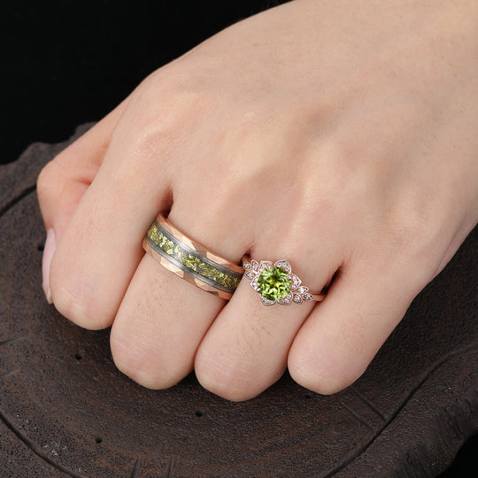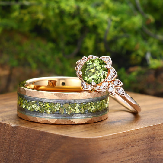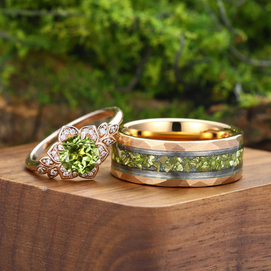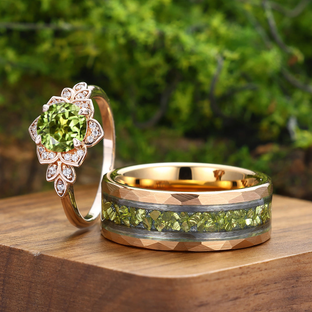 Vintage Blumen Peridot Paar Ring Set Naturinspiriert Grün Sein Und Ihr Ring