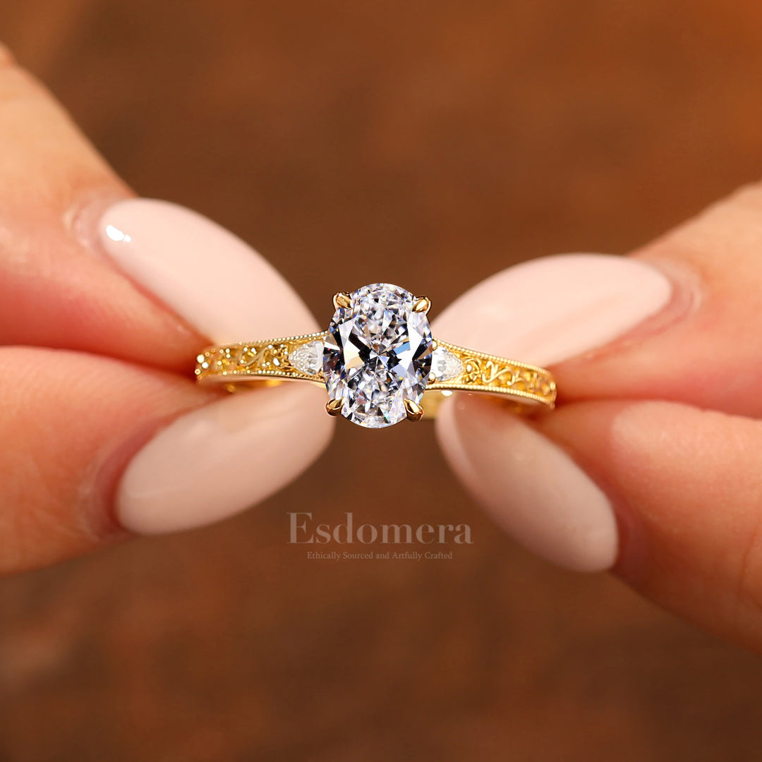 - Anillos con diamantes cultivados en laboratorio de corte ovalado: Descubre la forma ovalada favorecedora, brillante y muy buscada.