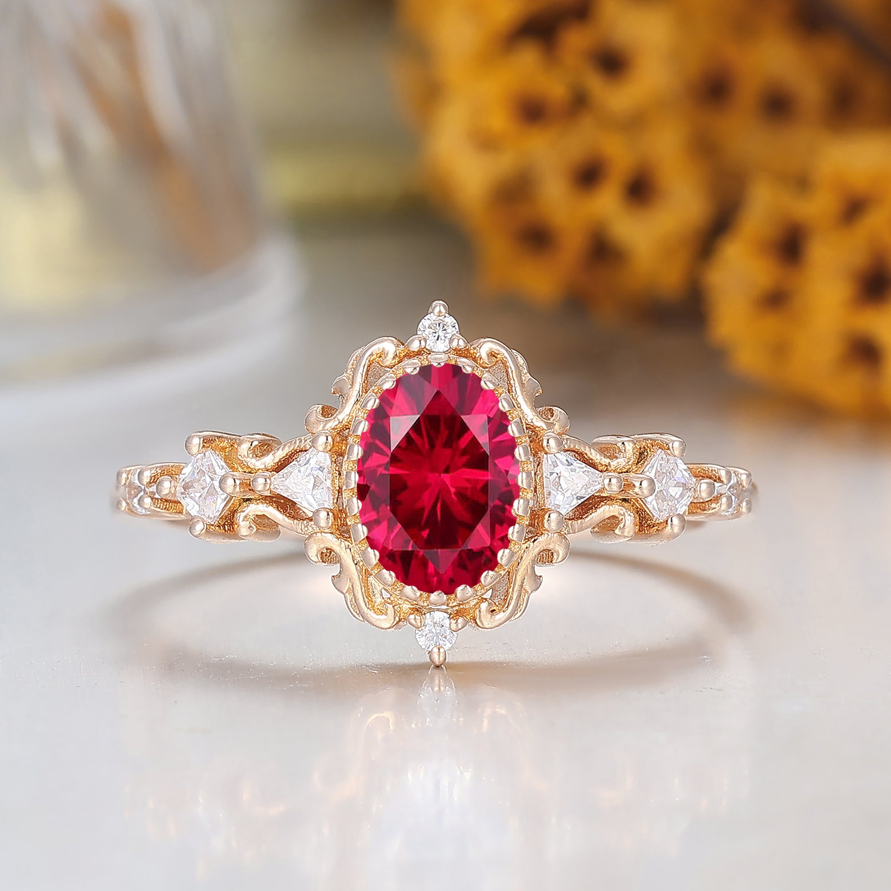 Antique Scrollwork Ruby Engagement Ring 14K Gold Bridal Ring For Women