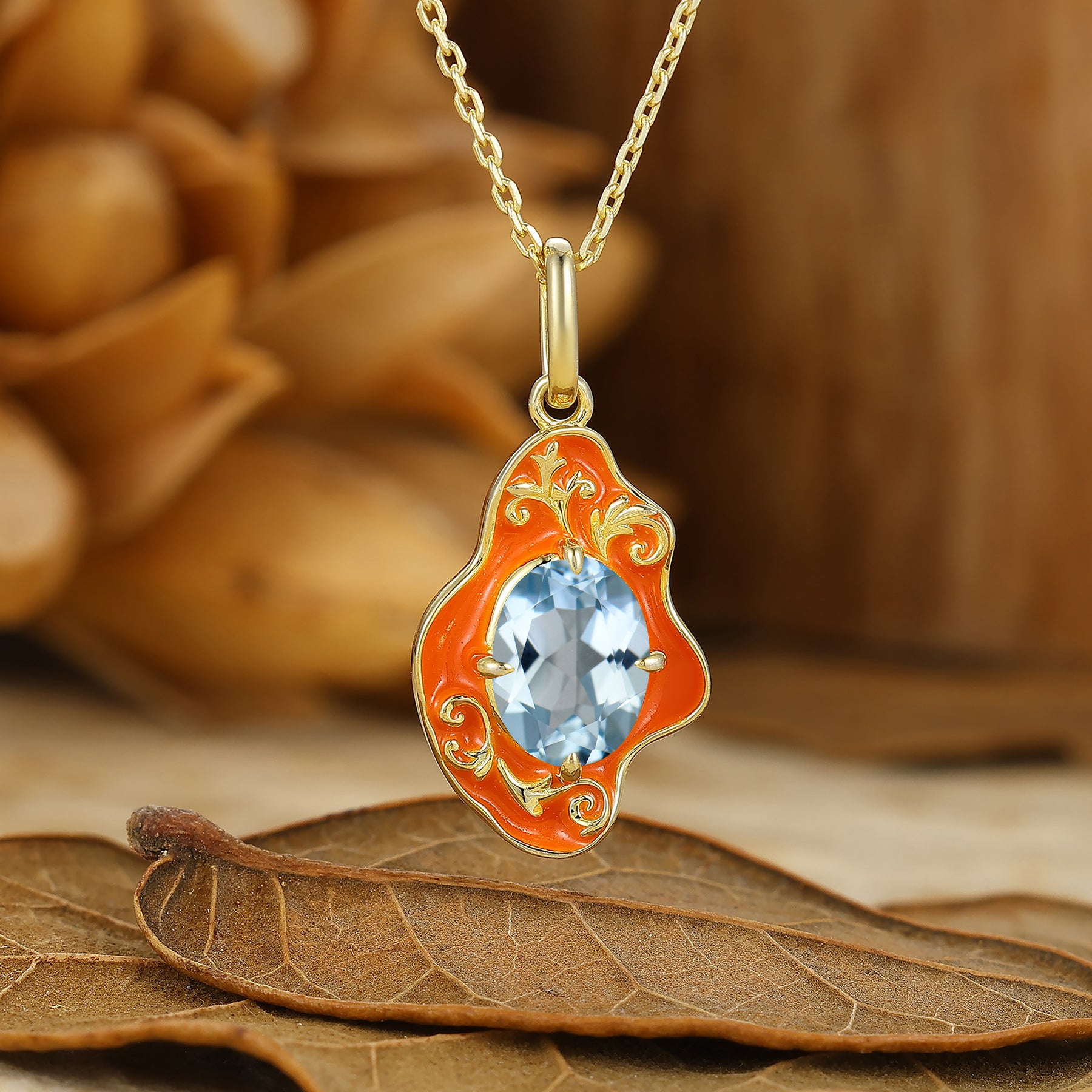 Unique Oval Moss Agate Necklace Filigree Orange Resin Design Women Pendant