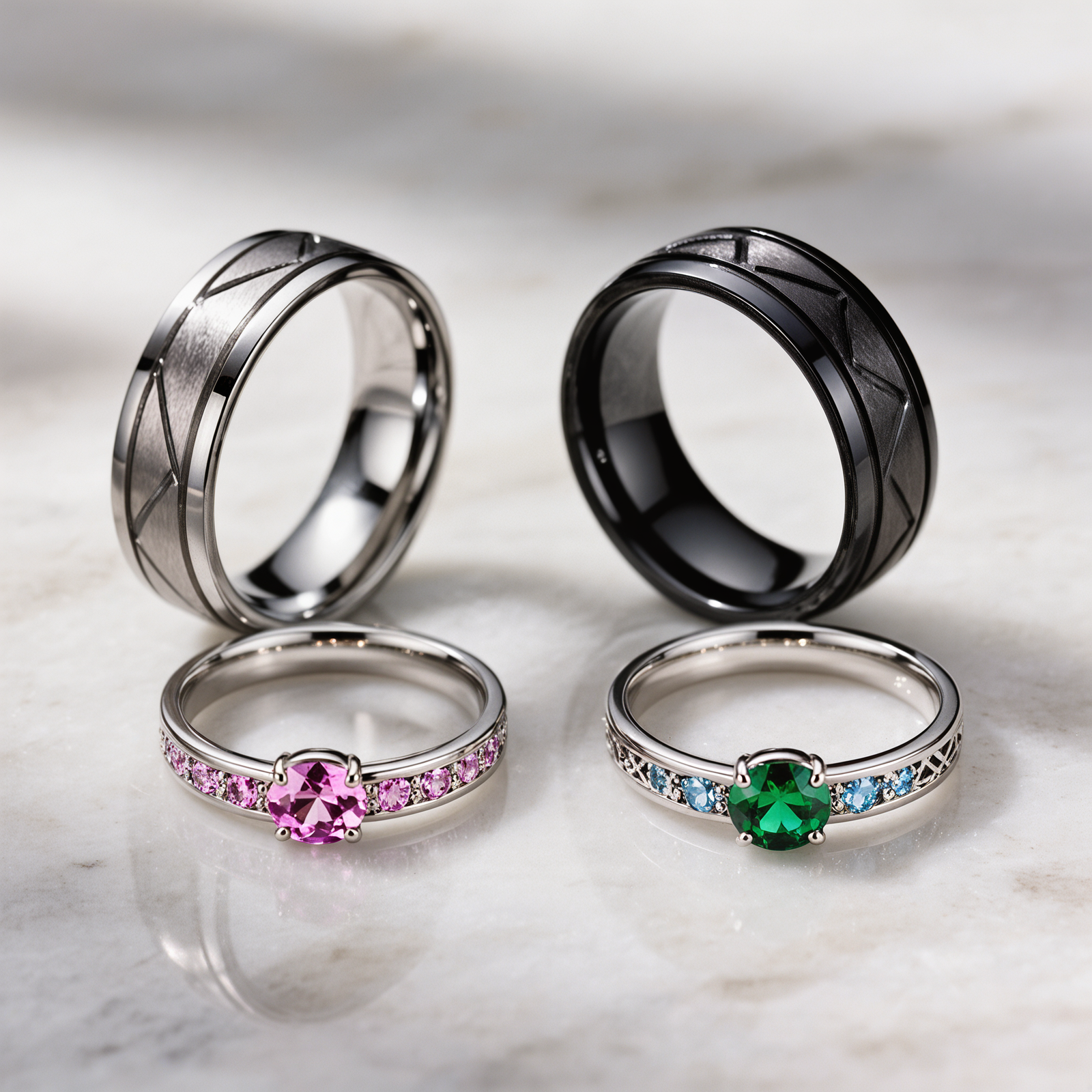 Carbure de tungstène offre une résistance ultime aux rayures avec une esthétique moderne et industrielle. Cependant, il ne peut pas être redimensionné et peut se briser sous un impact extrême.