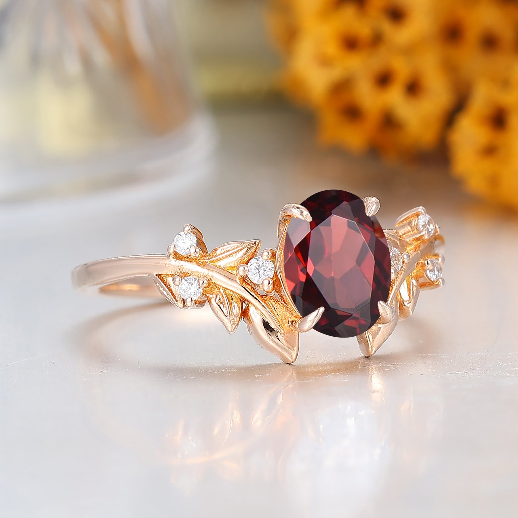 Bague d'anniversaire en argent avec grenat rouge naturel taille ovale 1,5 CT antique
