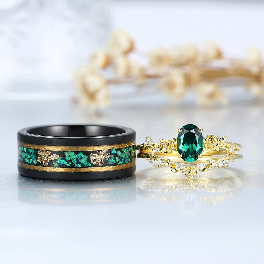 - Ensembles de bagues de mariage en émeraude : Faites une déclaration époustouflante le jour de votre mariage avec un ensemble de bagues de mariage vertes. Nos ensembles de mariage en émeraude comprennent souvent une bague de fiançailles éblouissante pour elle et une alliance en émeraude assortie pour lui, créant un look harmonieux qui symbolise votre union.