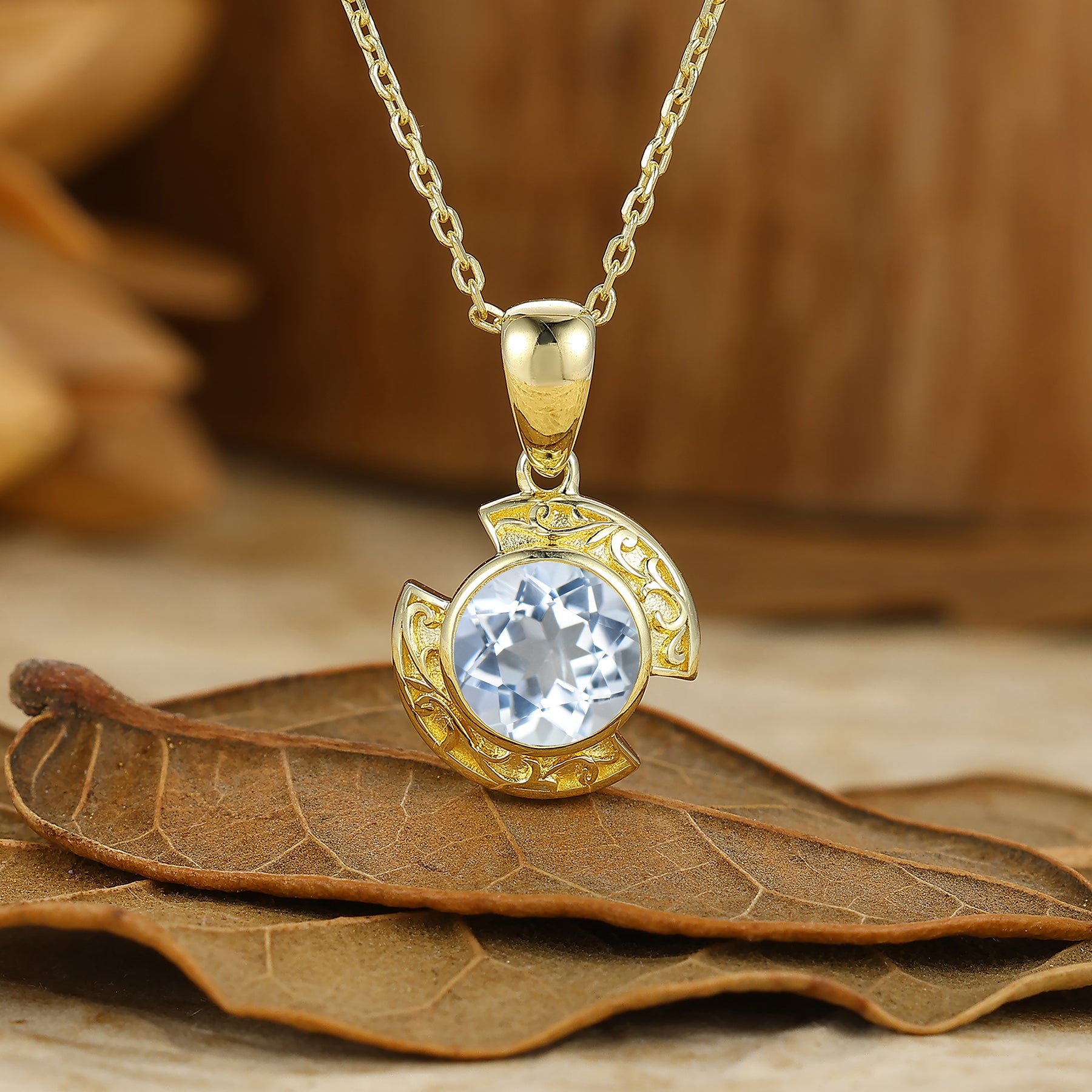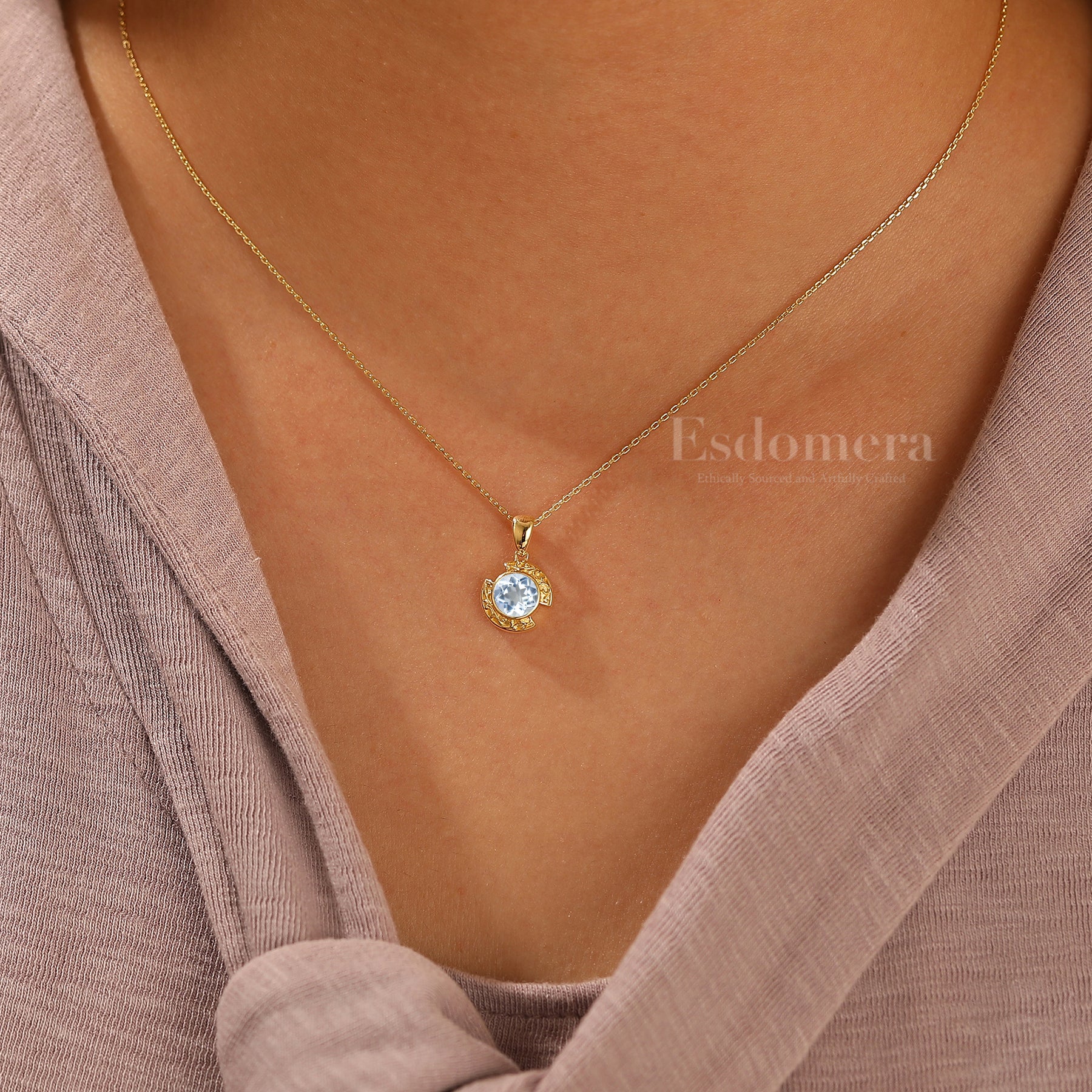 Collier pendentif en aigue-marine design croissant Brillant en or massif 14 carats pour femme