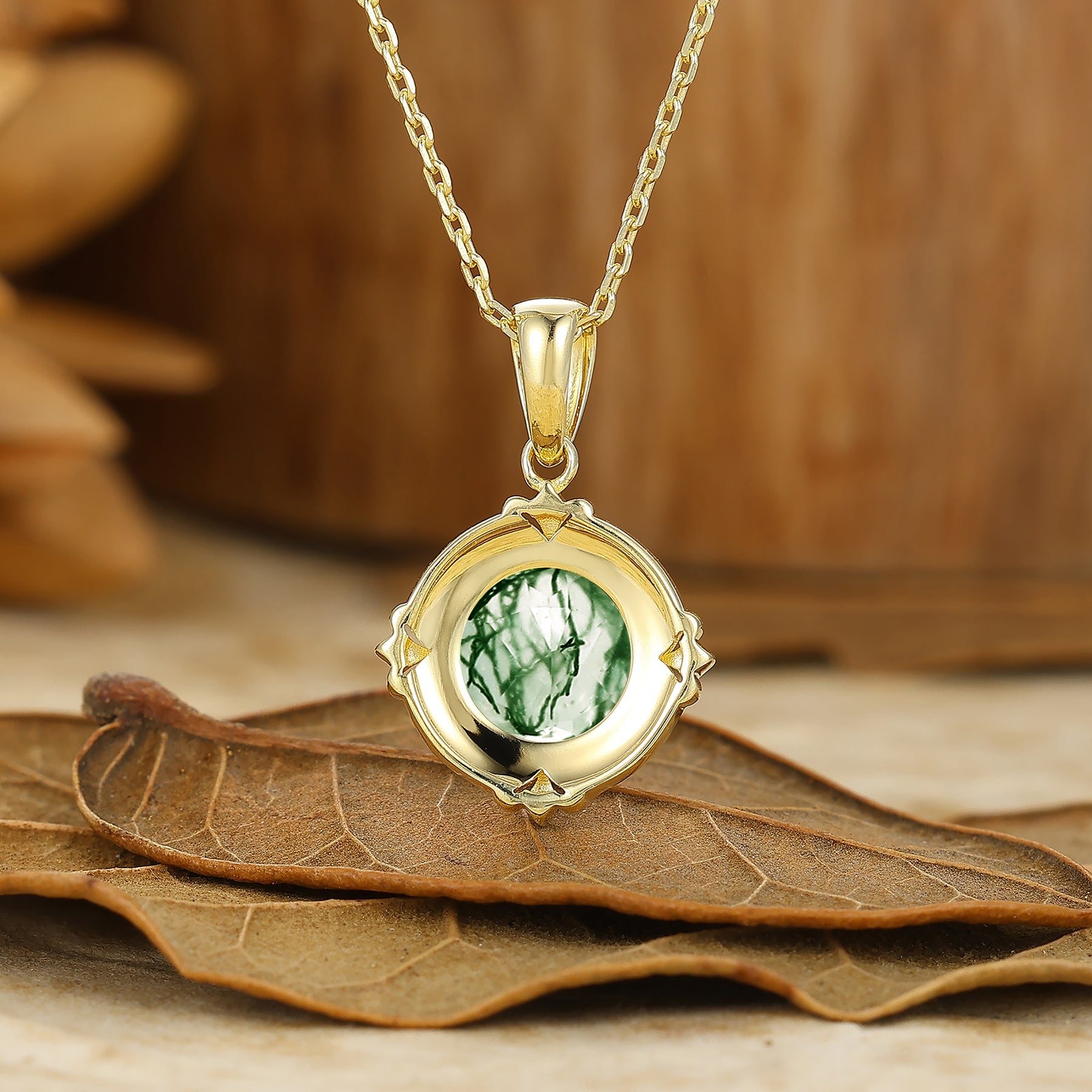 Dainty Heart Gravé Pendentif en Agate Mousse Verte Vigne Collier Anniversaire Femme