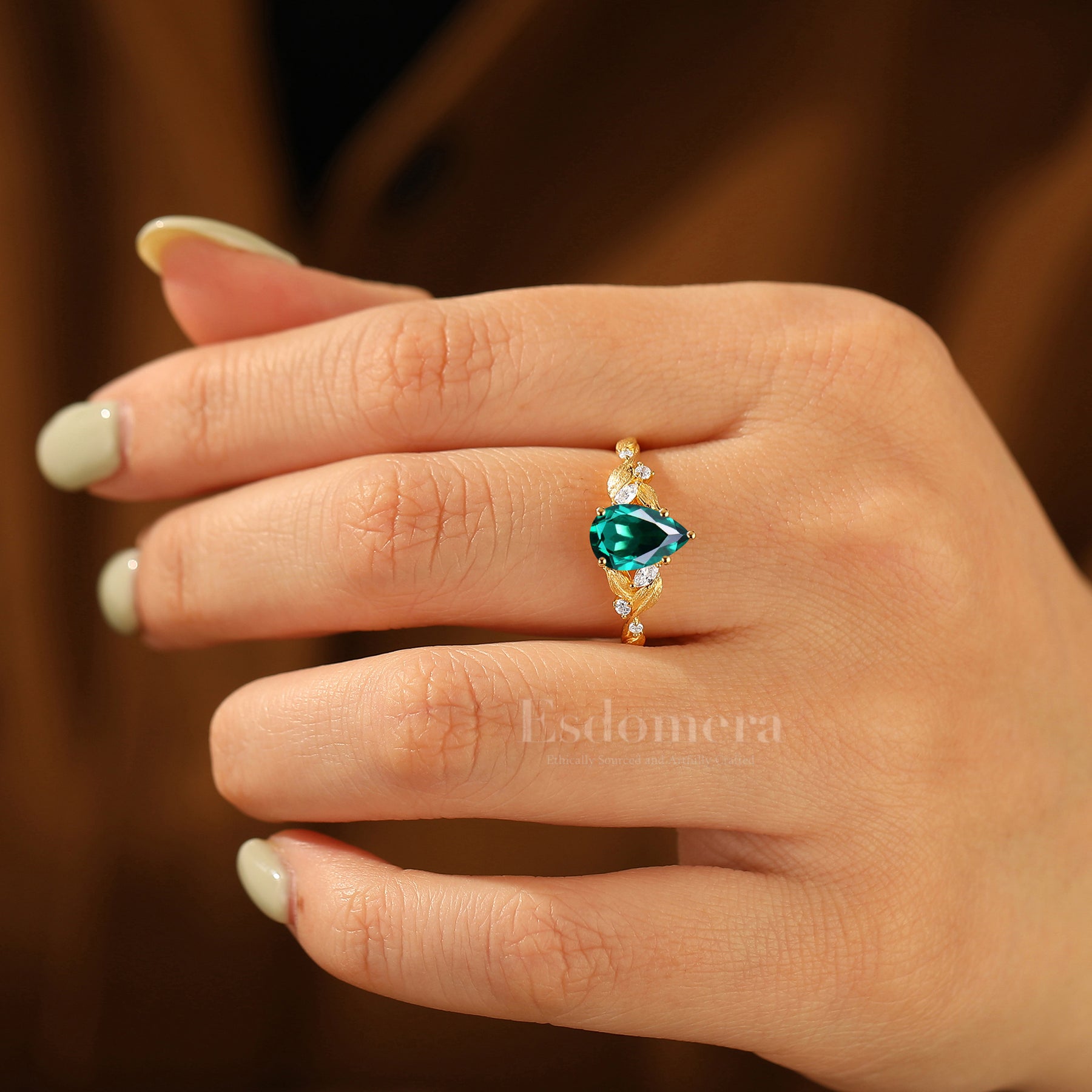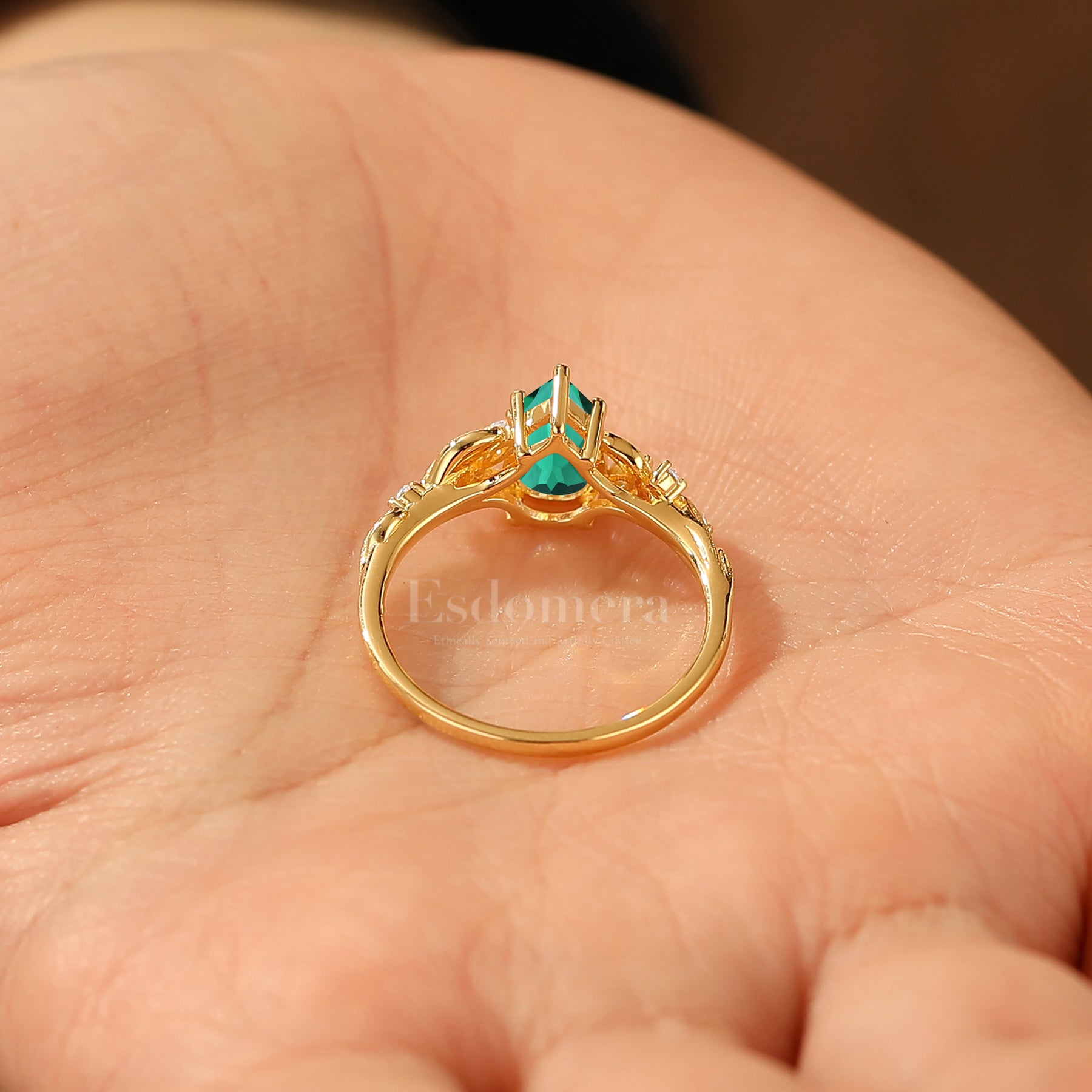 Art Deco 1.5CT Pear Emerald Women Ring Unique Leaf-inspired Emerald Engagement Ring