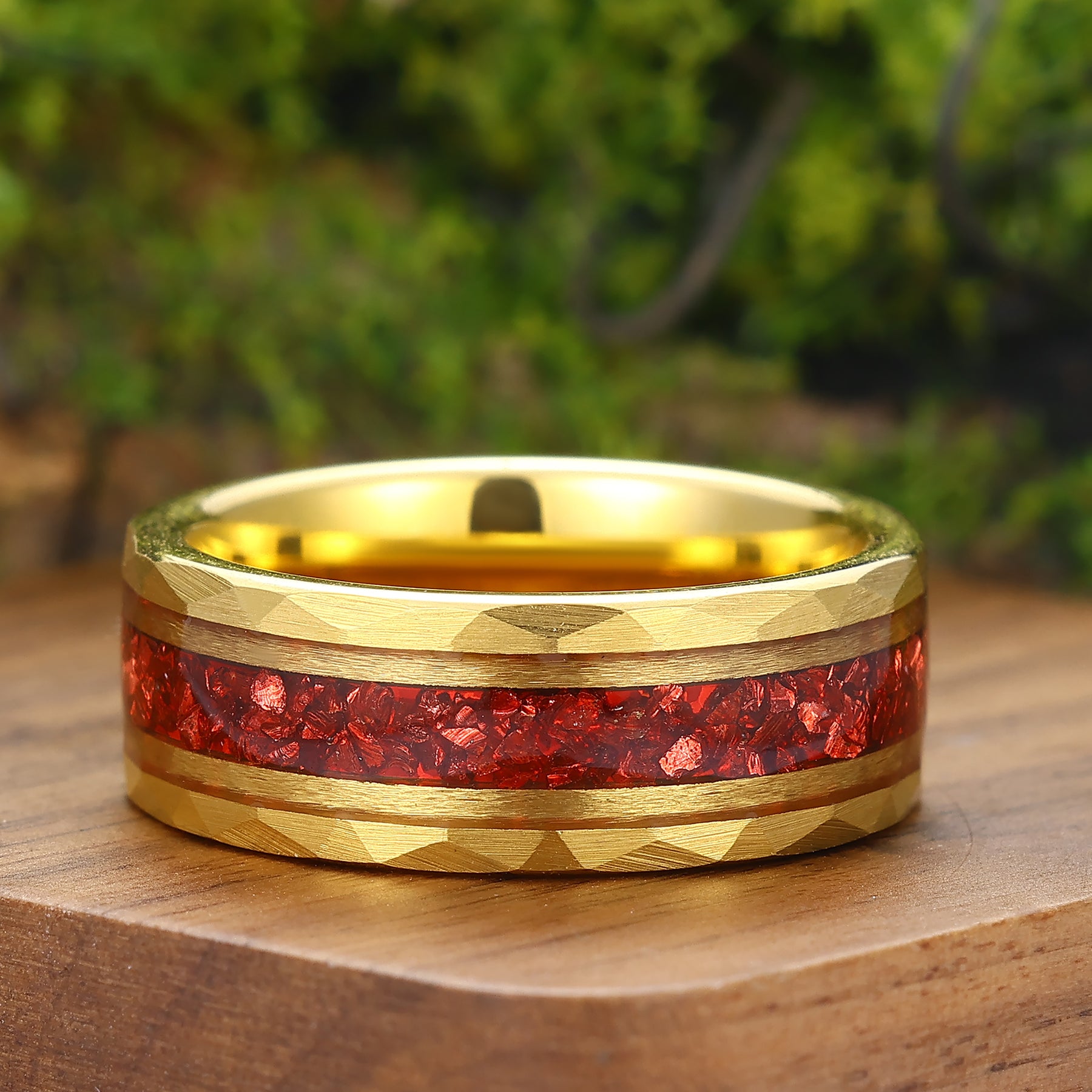 Tipo di metallo: Carburo di tungsteno -  Intarsio di rubino coltivato in laboratorio frantumato - Ipoallergenico