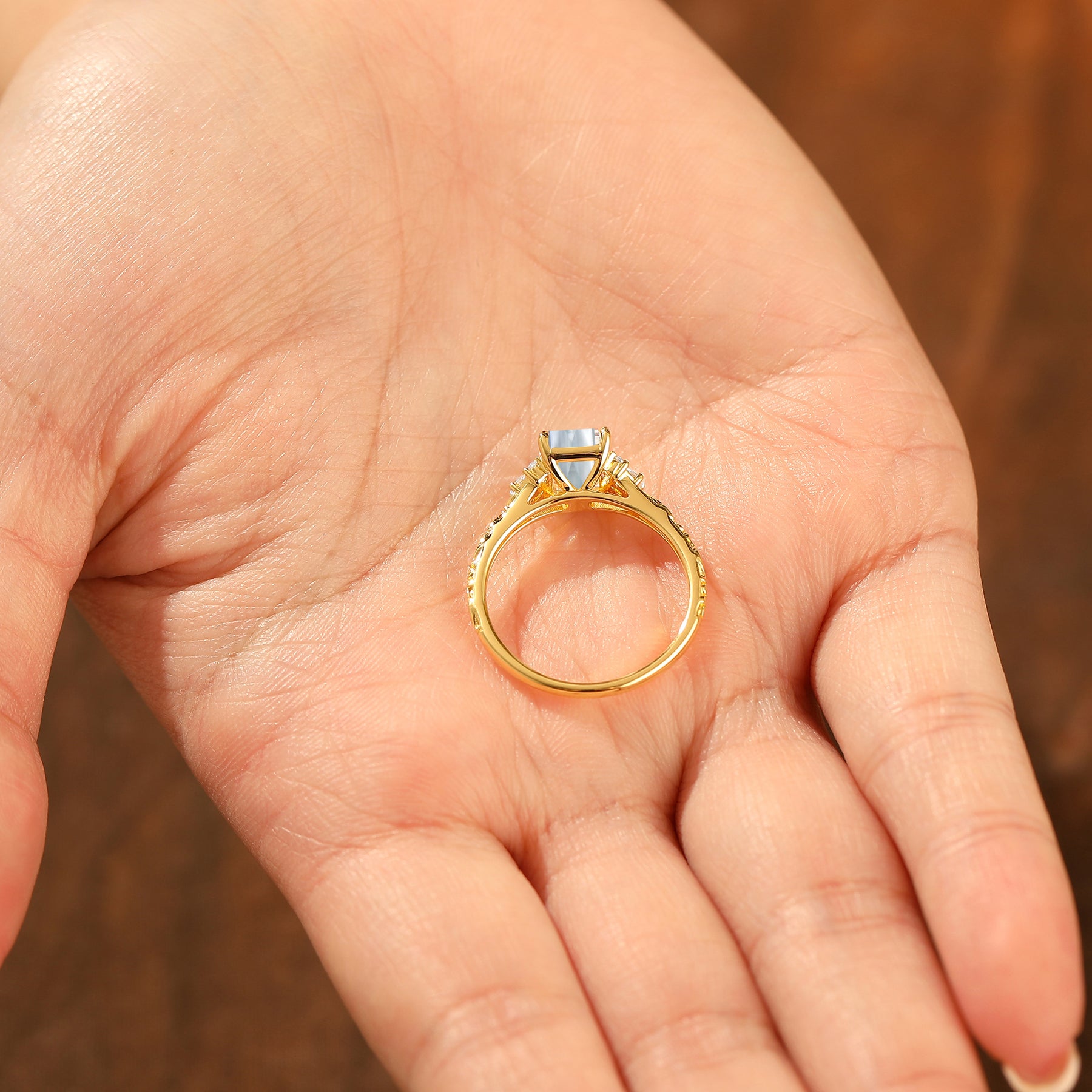 Middesteen: Lab-Gemaakte Aquamarijn (voor zilveren ringen) of Natuurlijke Aquamarijn (voor massief gouden ringen)