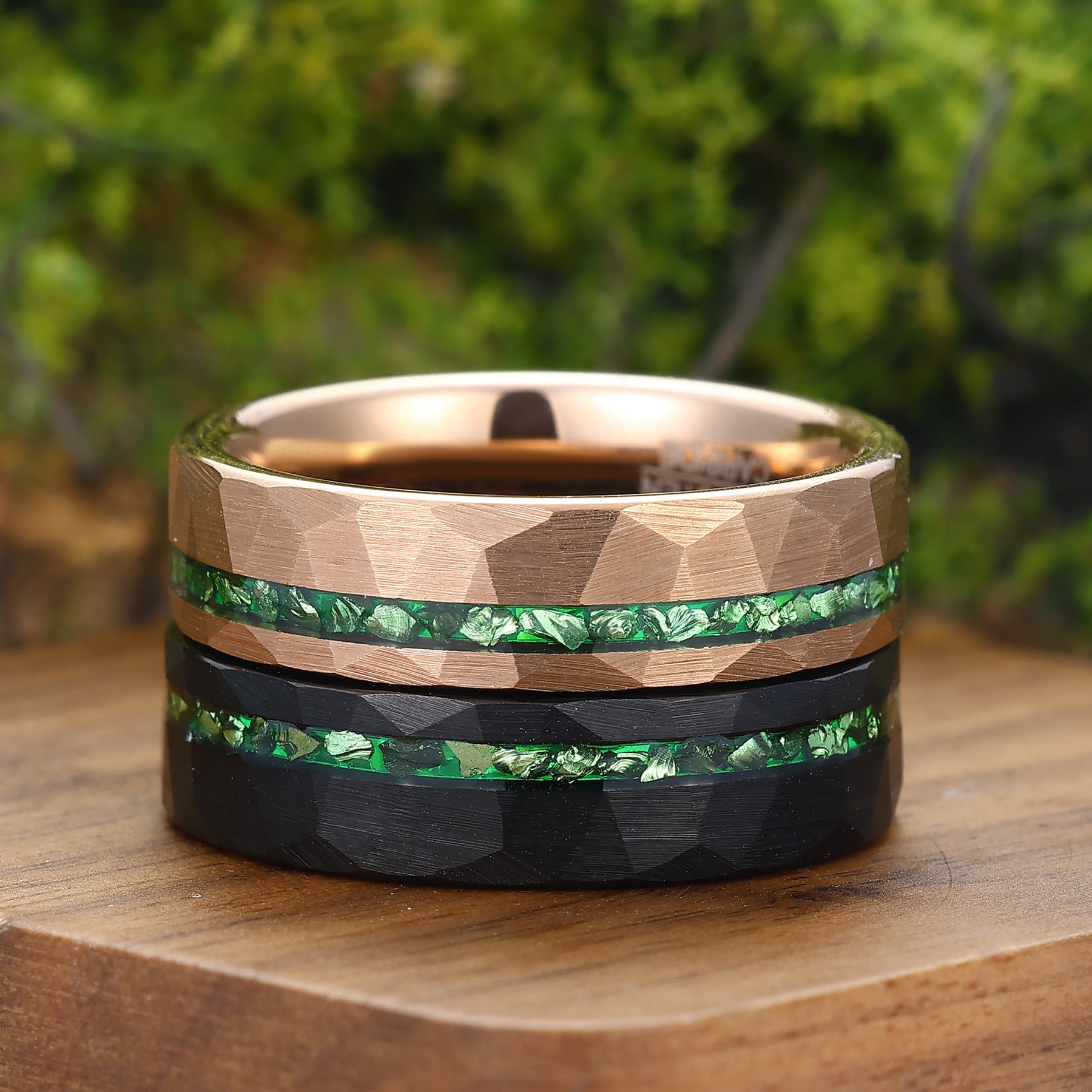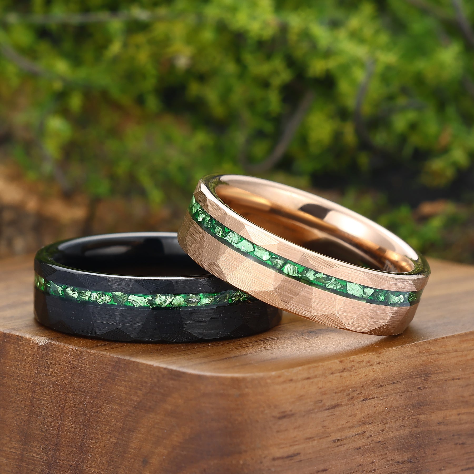 6mm Groene Smaragd Gesmede Wolfraam Paar Ringen Zwart En Roségoud Vergulde Trouwringen