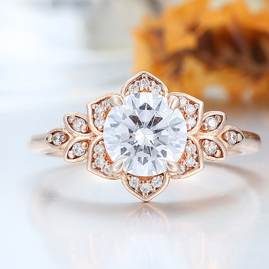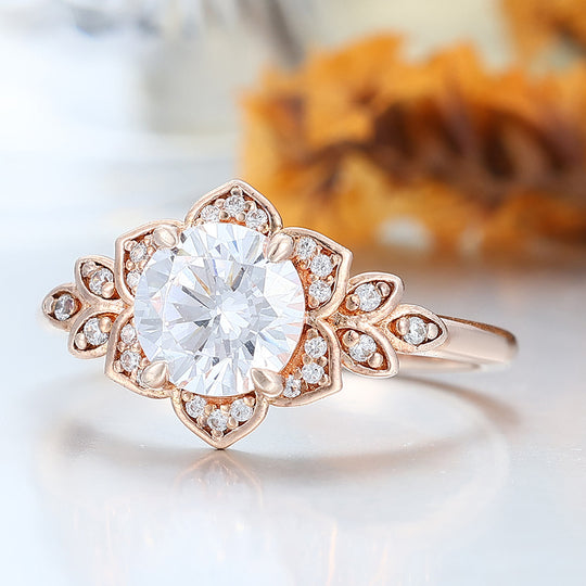 Artsy Cluster Round Moissanite Engagement Ring Unique Promise Anniversary Bridal Ring