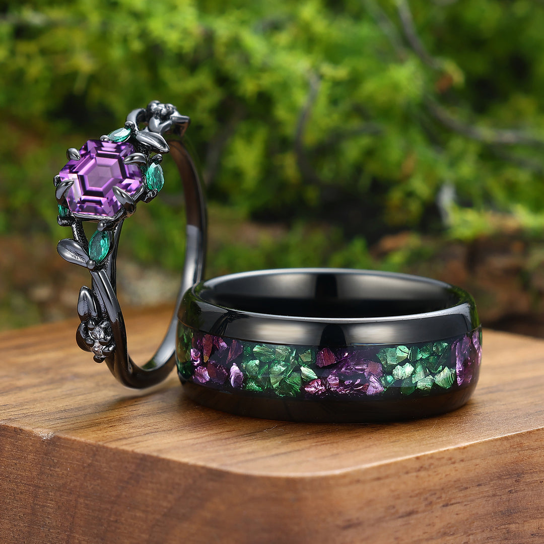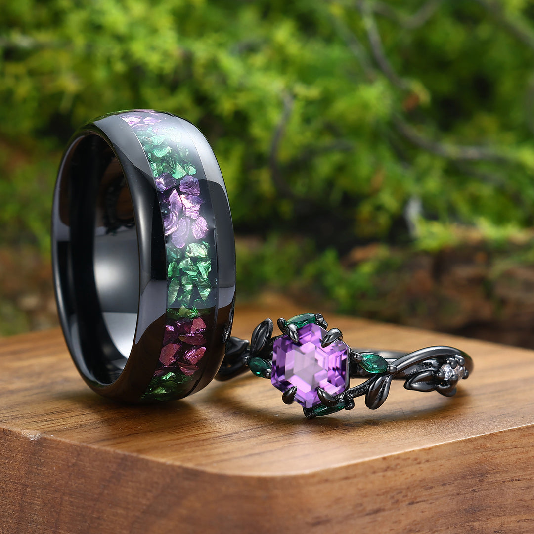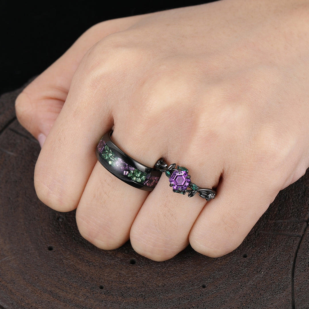 Branch Leaf Design Amethyst His And Hers Matching Rings Nature Inspired Couples Ring