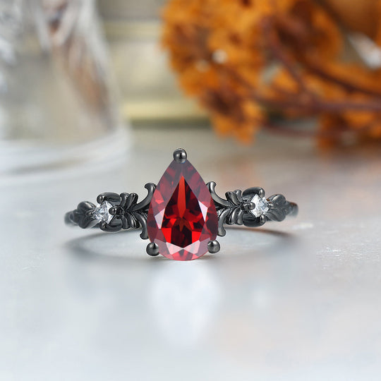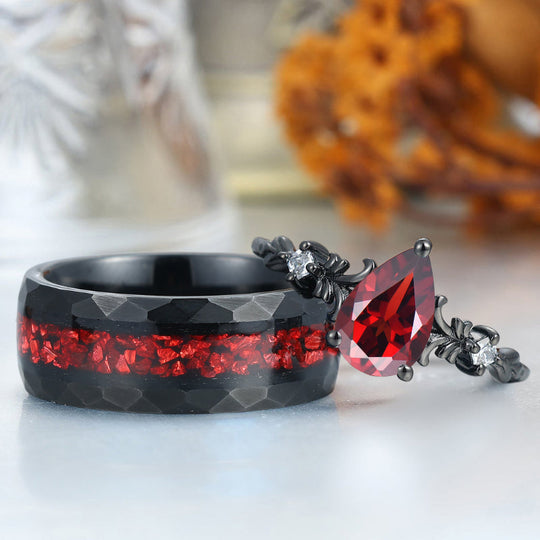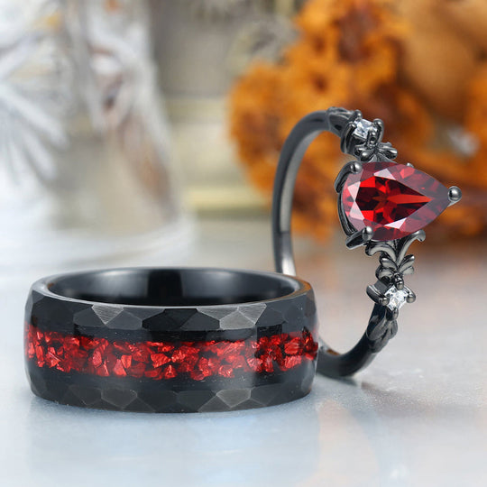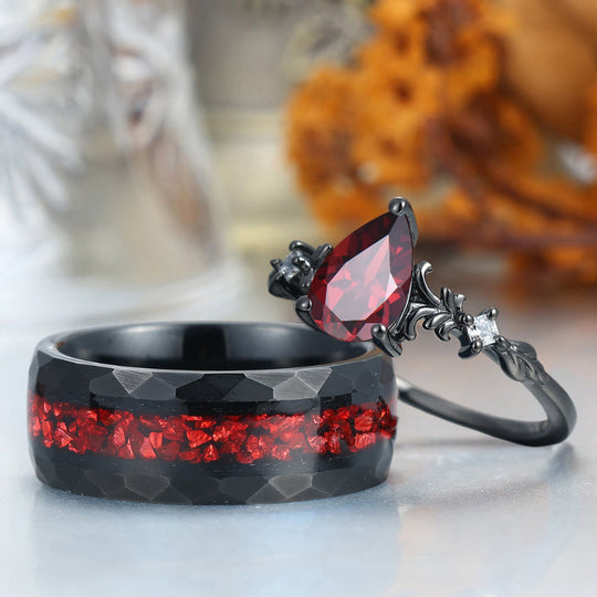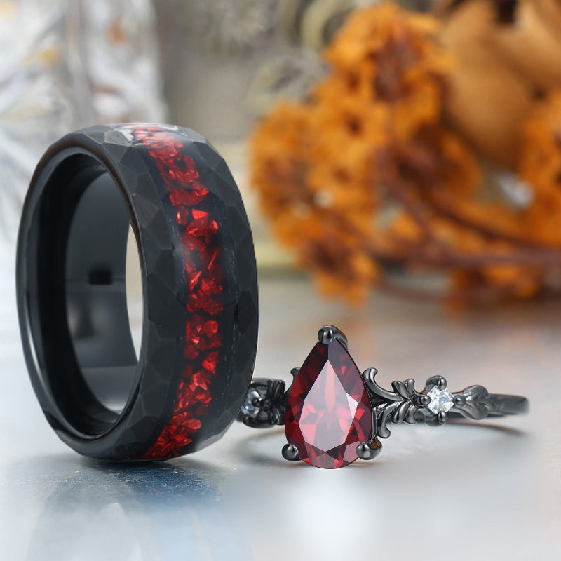 Exquisite Filigreed Natural Red Garnet Couple Rings Modern Red Anniversary His And Hers Matching Band