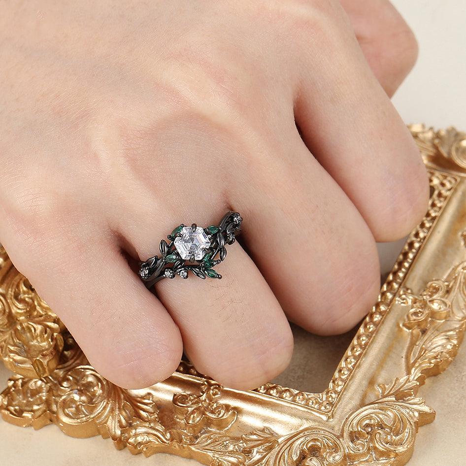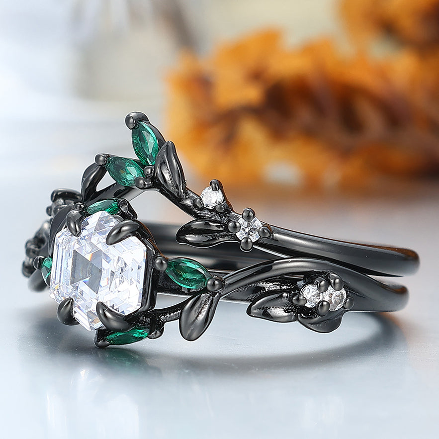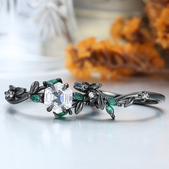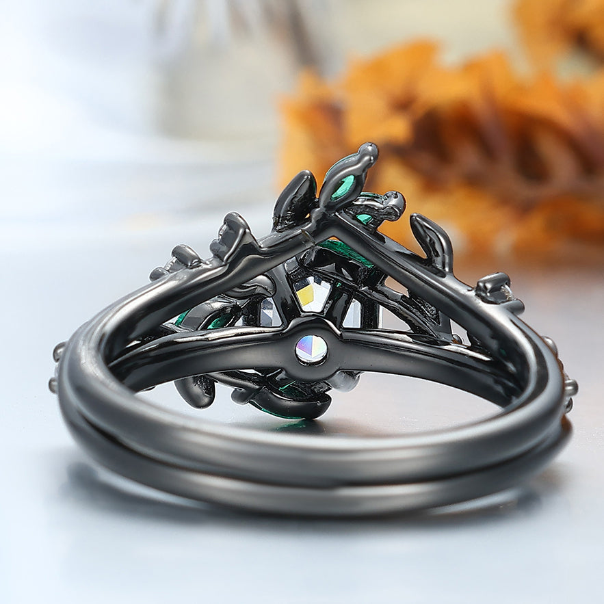 Exquisite Moissanite Sprig Engagement Ring Set Emerald Inlay Bridal Ring Set -  Esdomera.com
