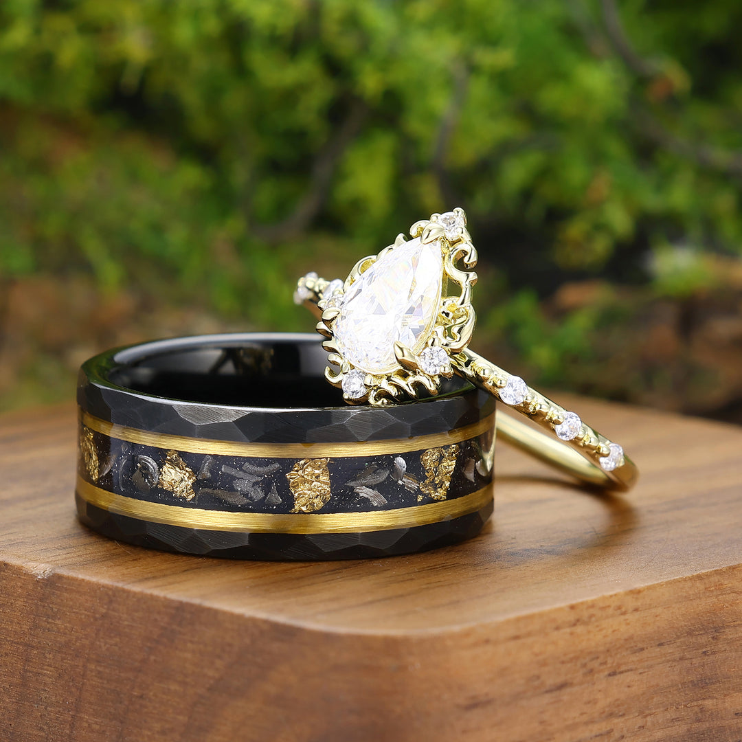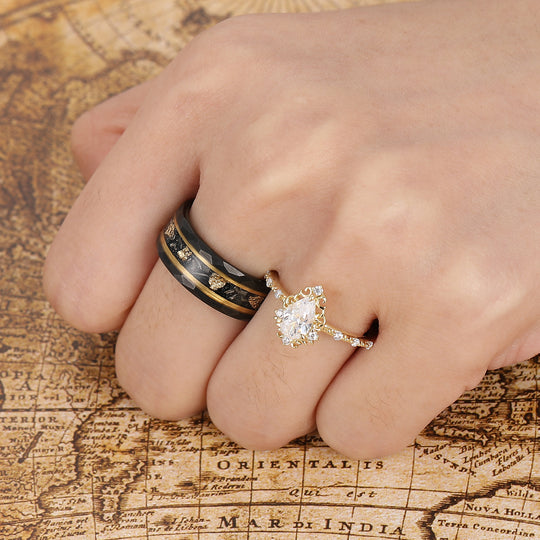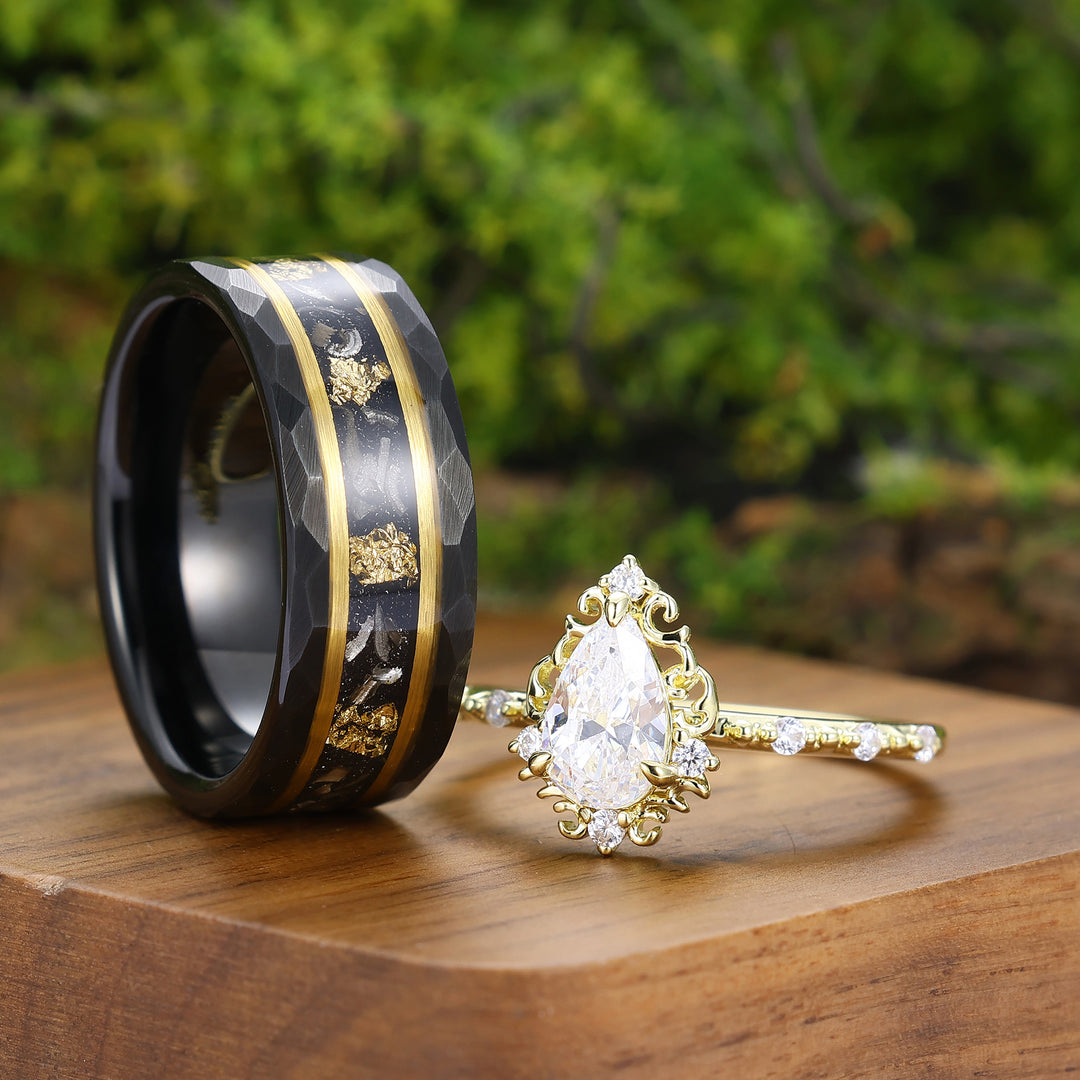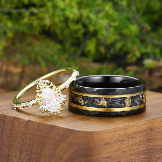 Filigreed Moissanite His And Hers Matching Ring Gold Plated Couple Rings