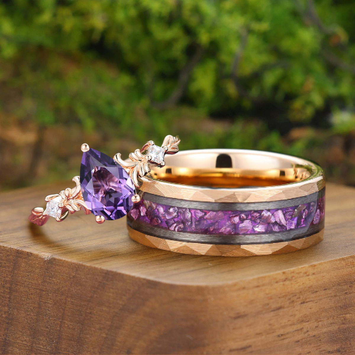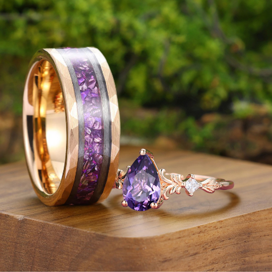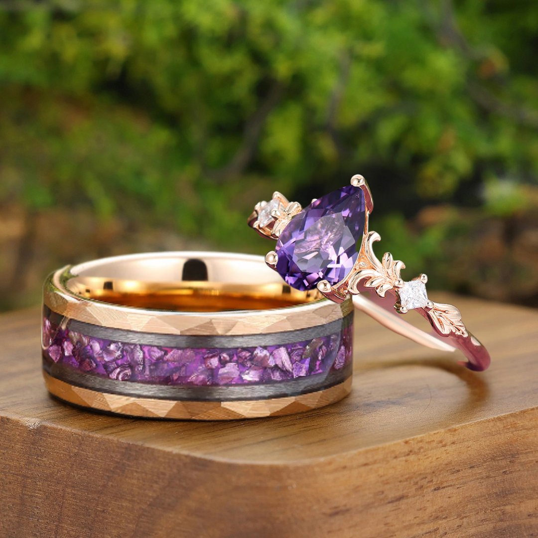 Nature Inspired Amethyst S925 And Tungsten Couples Ring His And Hers Matching Band