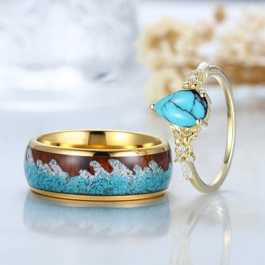Nature Inspired Turquoise Leaf Couple Rings Blue Ocean Style His And Hers Matching Ring