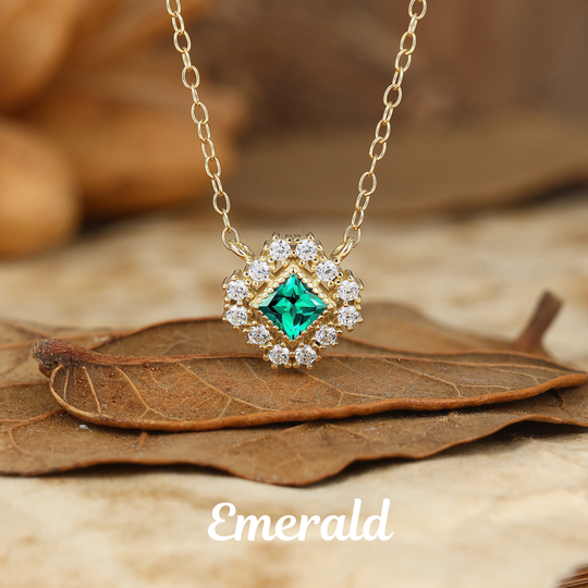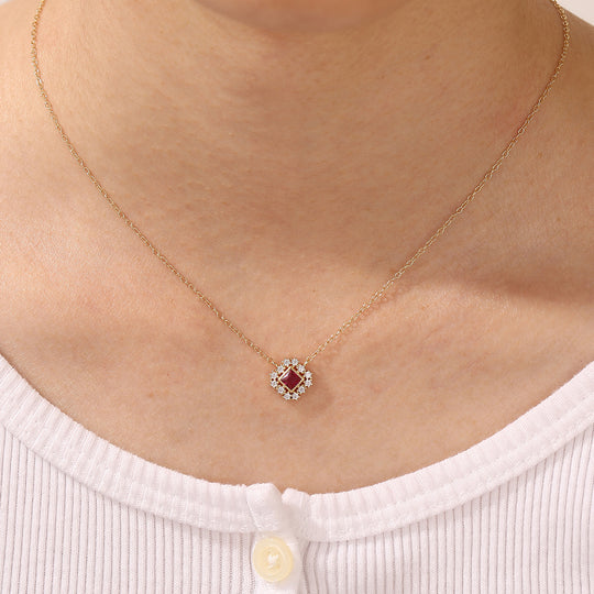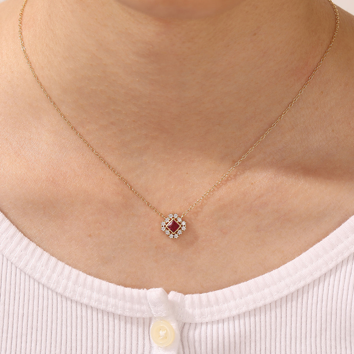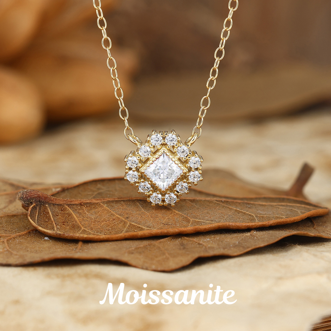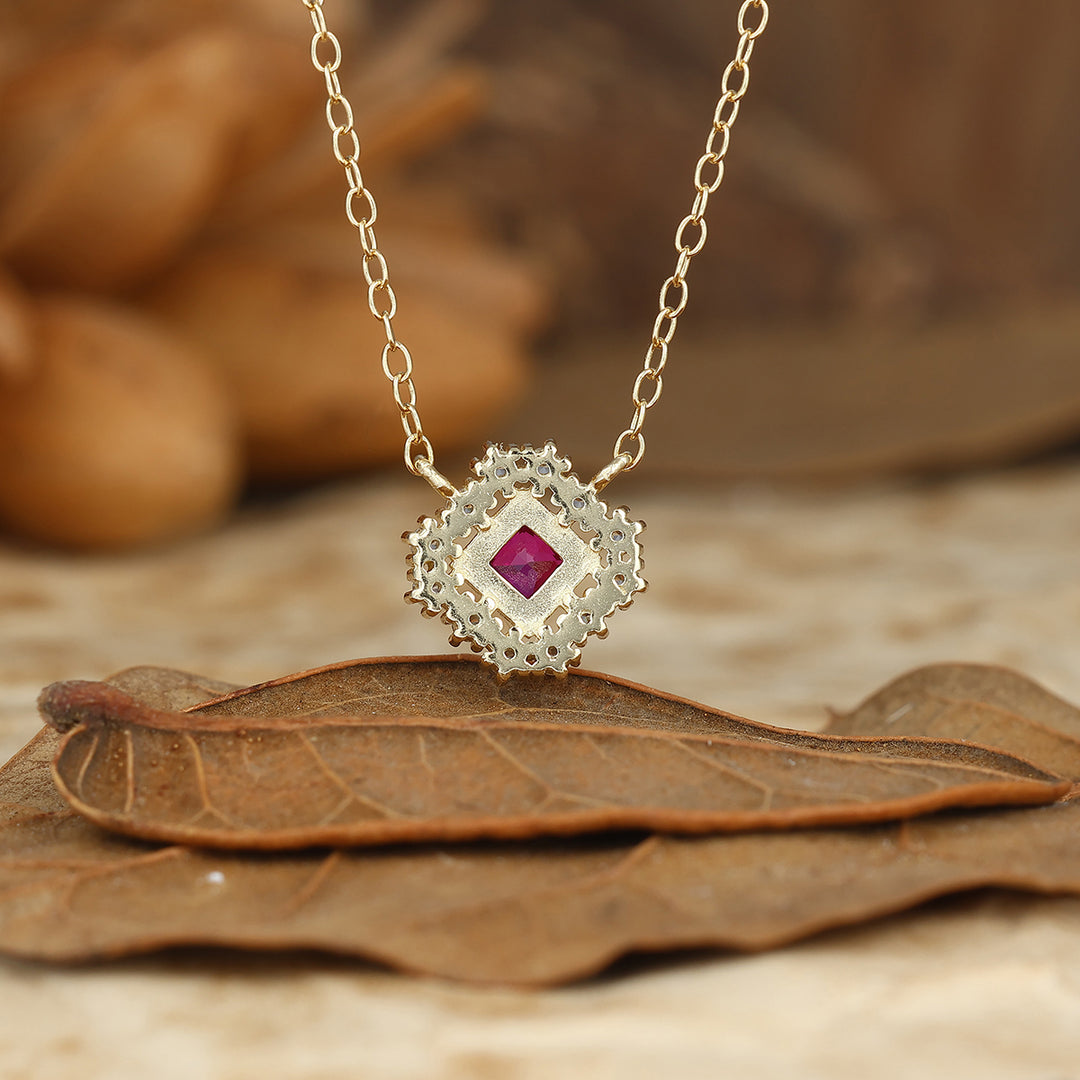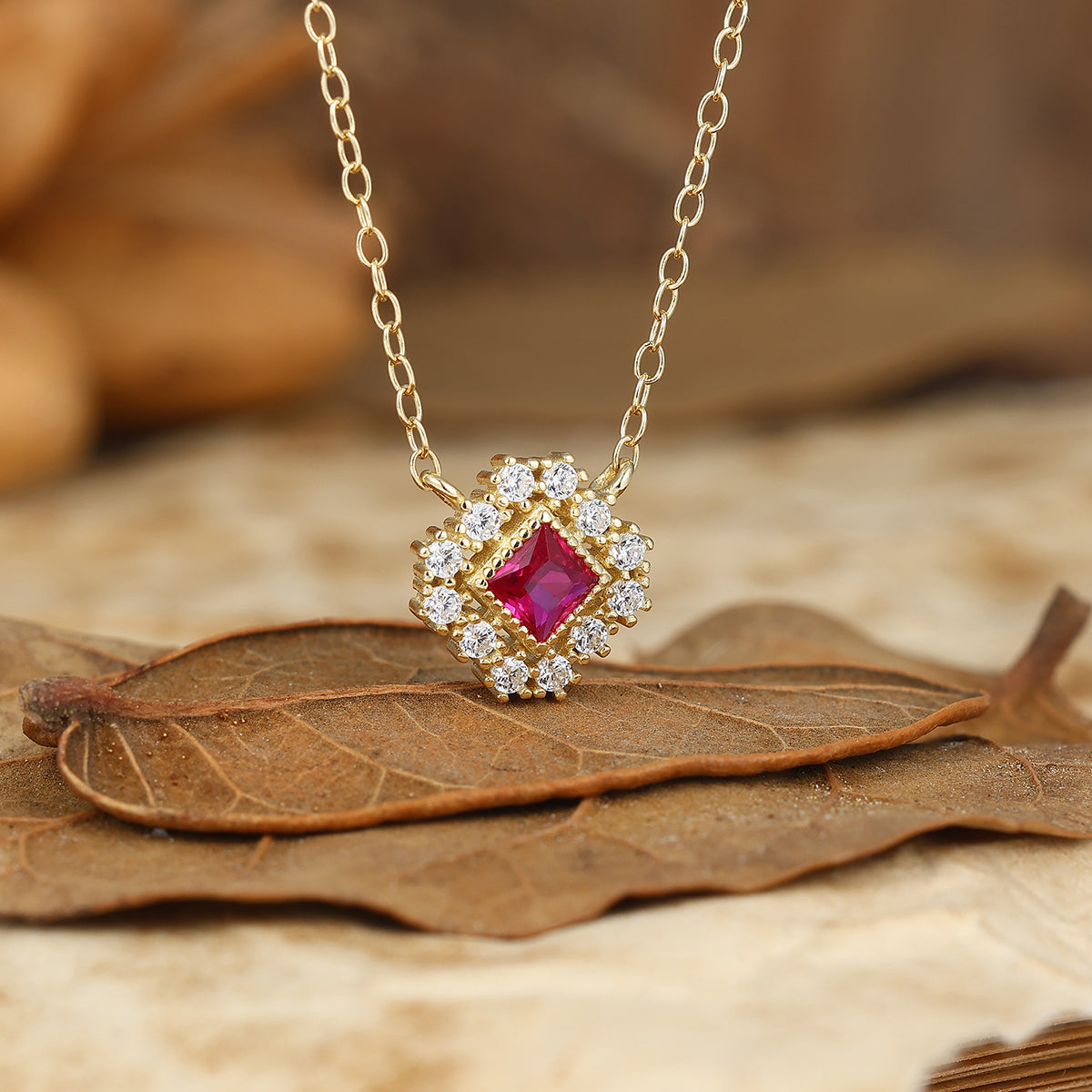 Princess shape Sapphire Pendant Necklace 14K Solid Gold Women Necklace Anniversary Gift