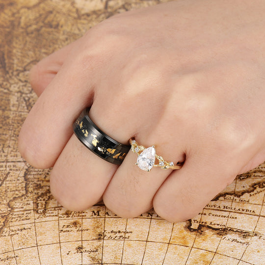 Metal Type: Tungsten Carbide - Crushed 18K Gold Leaf Inlay - Hypoallergenic