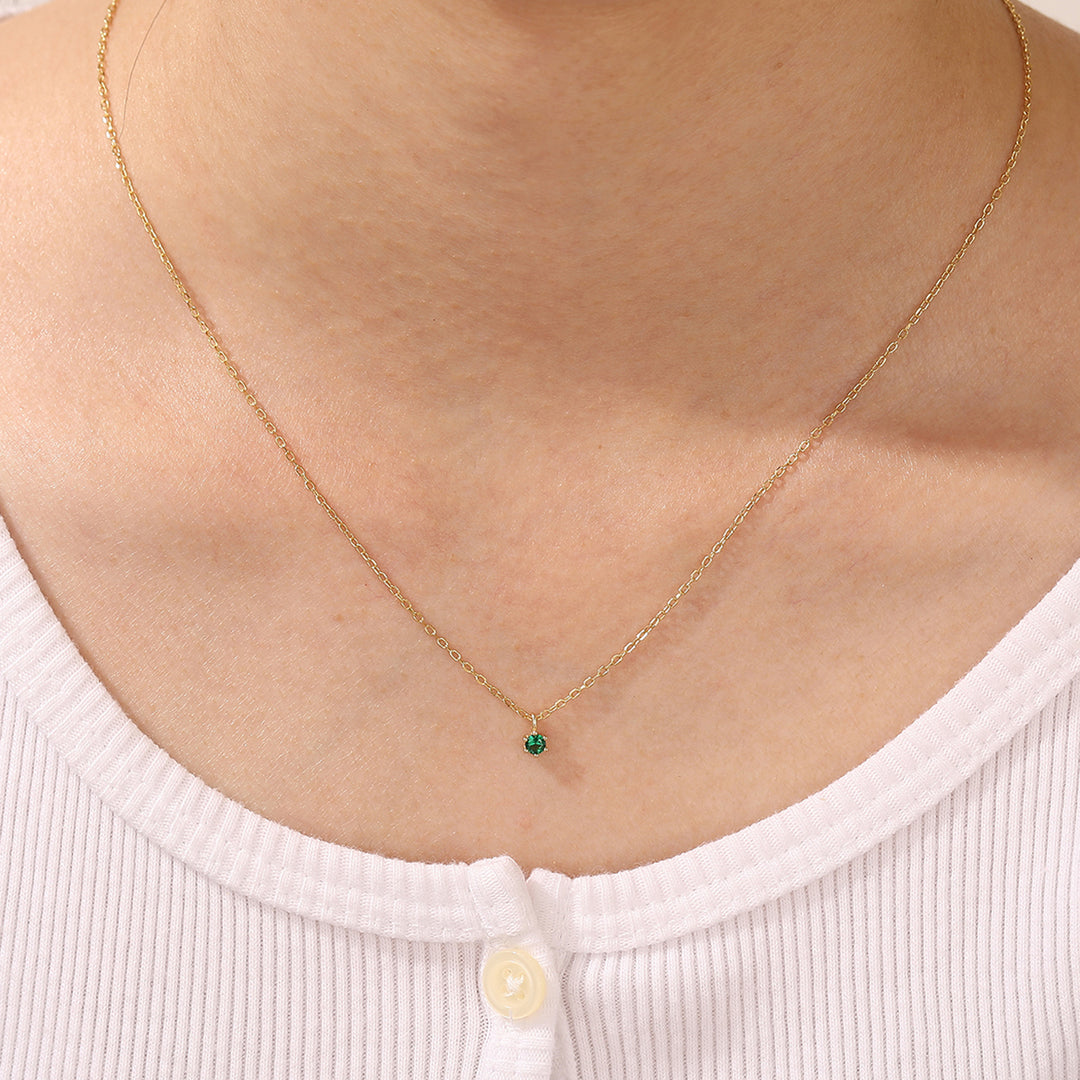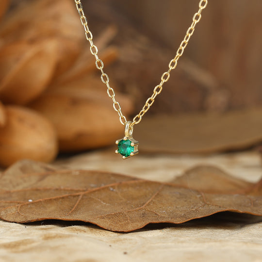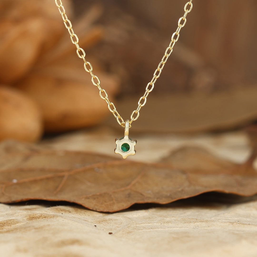 Tiny Round Cut Emerald Pendant Necklace Solitaire Gemstone Necklace Women Bridal Birthday Gift