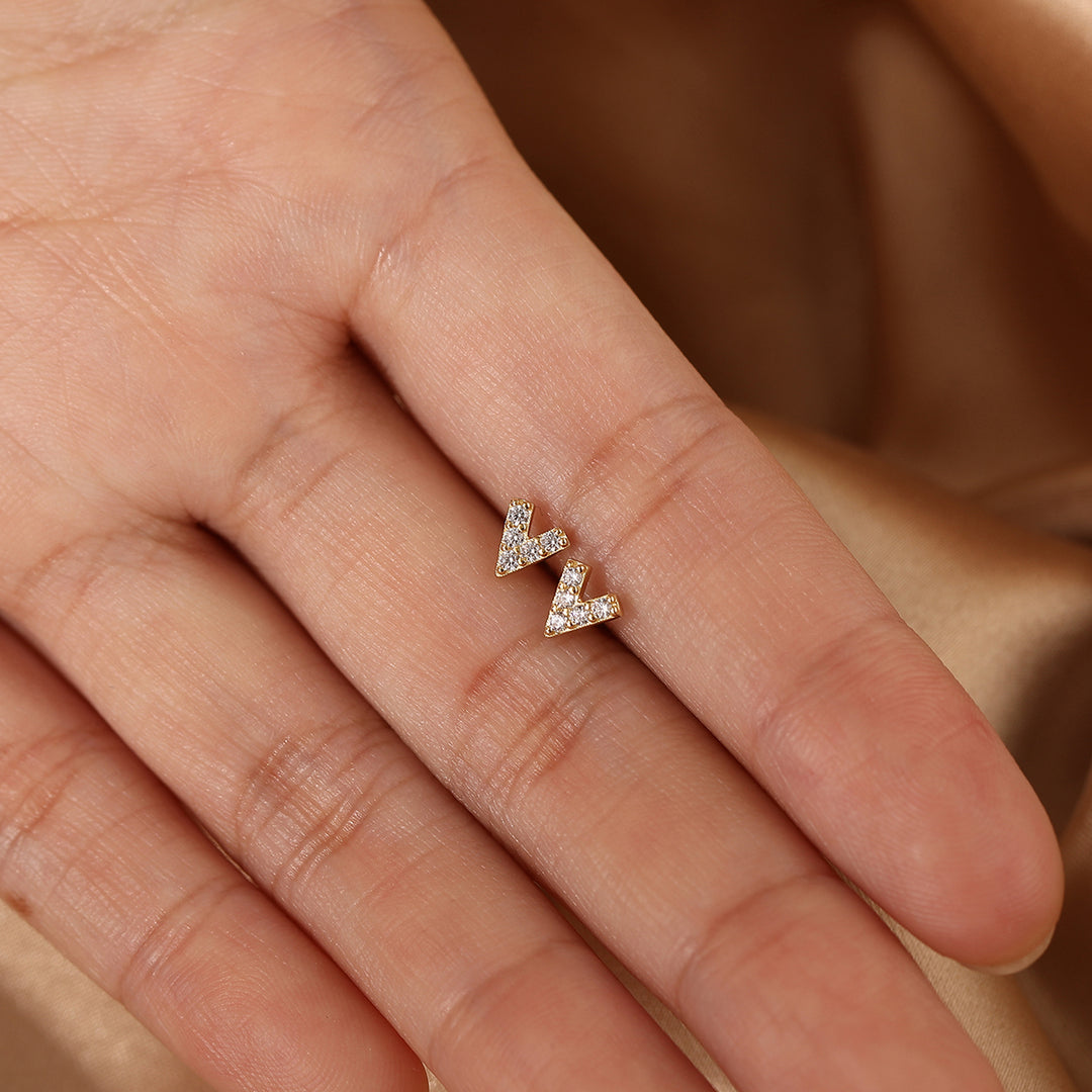 Unique V Shape Stud Earrings Round Moissanite Pavé Birthday Gifts for Her