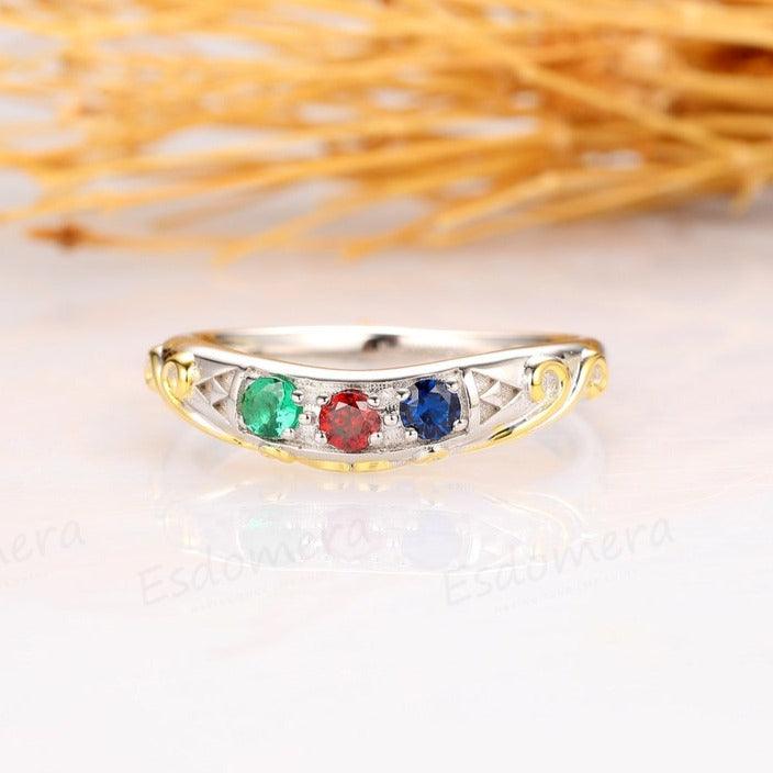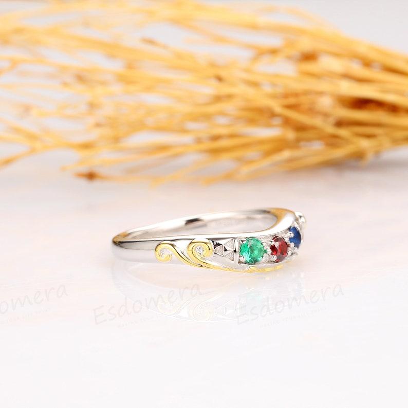 Video Game Wedding Band 14k Two Tone Gold Zelda Ring Natural Gemstone Ring - Esdomera