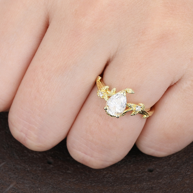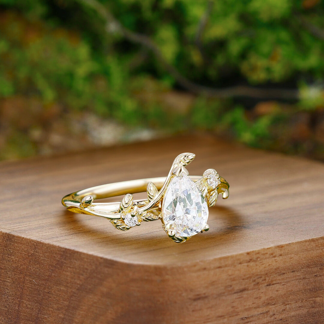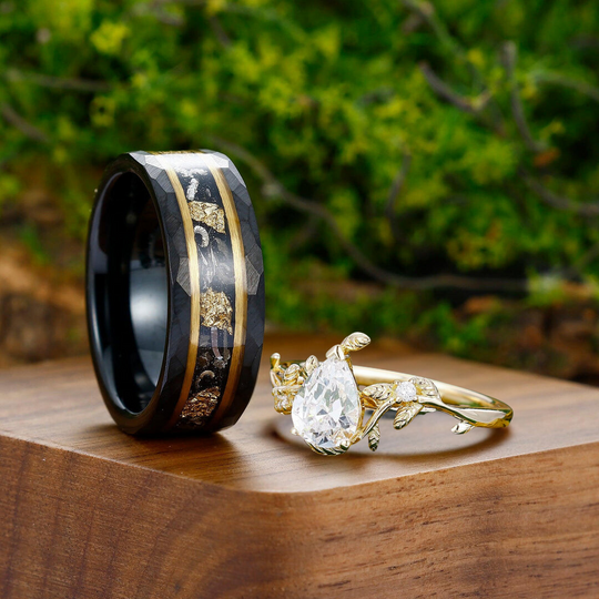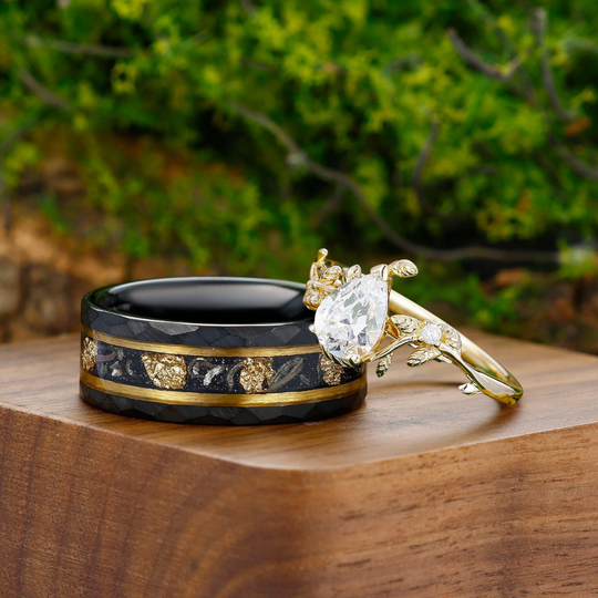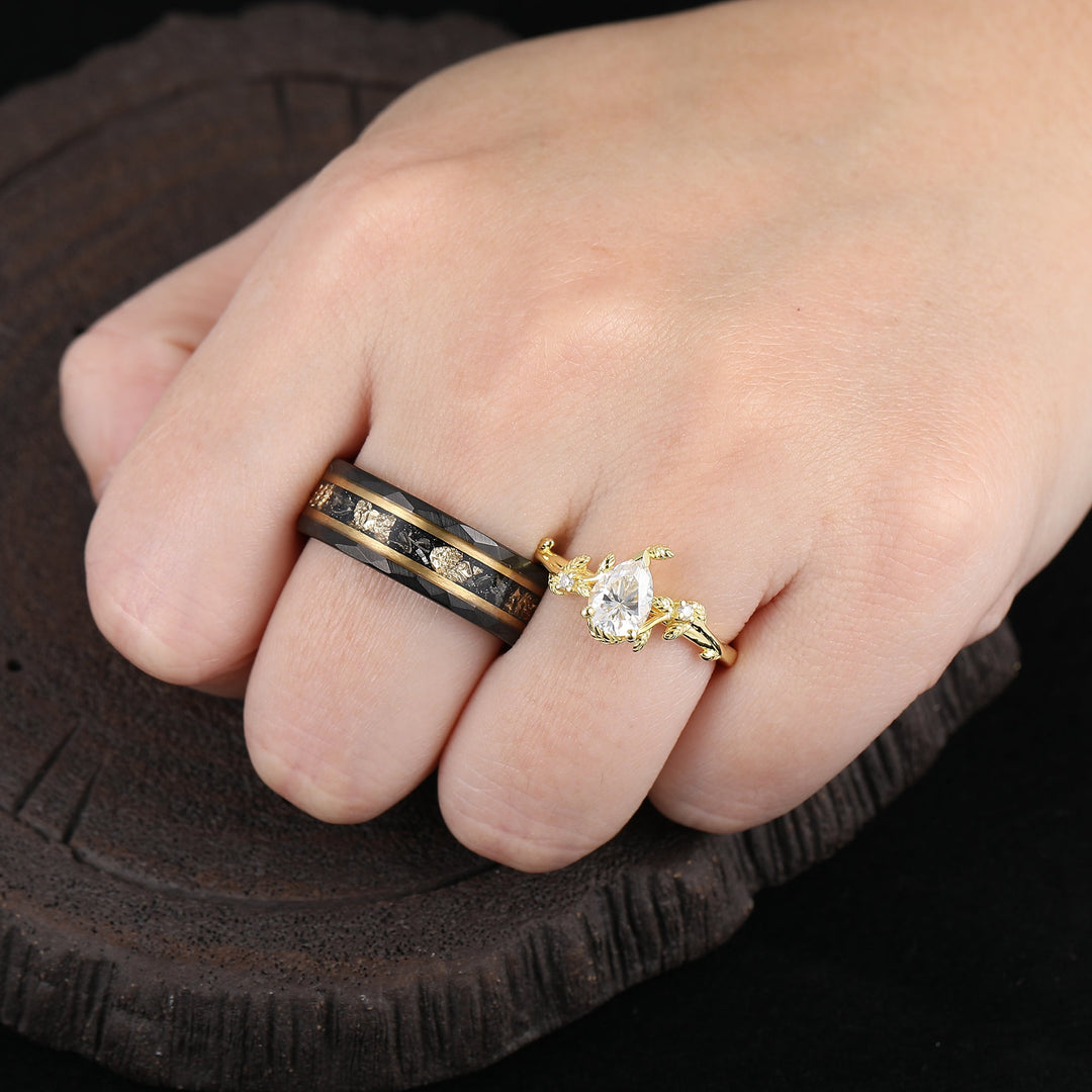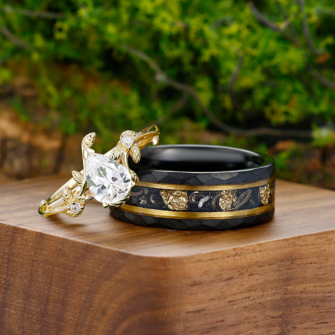 Vintage Pear Cut Moissanite Leaf Promise Rings for Couples 925 Sterling Silver And Tungsten Matching Ring - Esdomera